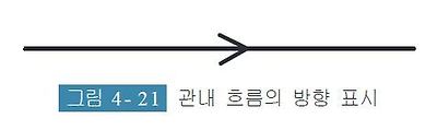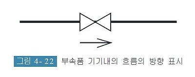 관내 흐름의 방향은 [그림 4- 21]과 같이 관을 표시하는 선에 붙인 화살표의 방향으로 표시한다.