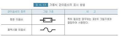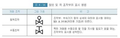 밸브 개폐조작부의 동력조작· 수동조작의 구별을 명시할 필요가 있는 경우에는 <표4- 16>의 그림기호에 따라 표시한다.
