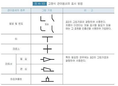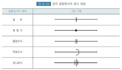 관의 결합방식은 <표 4- 11>의 그림기호에 따라 표시한다.