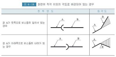 1방향에서 본 투영도로 배관계의 상태를 표시하는 방법은 <표 4- 17> 및 <표4- 18>에 따른다.