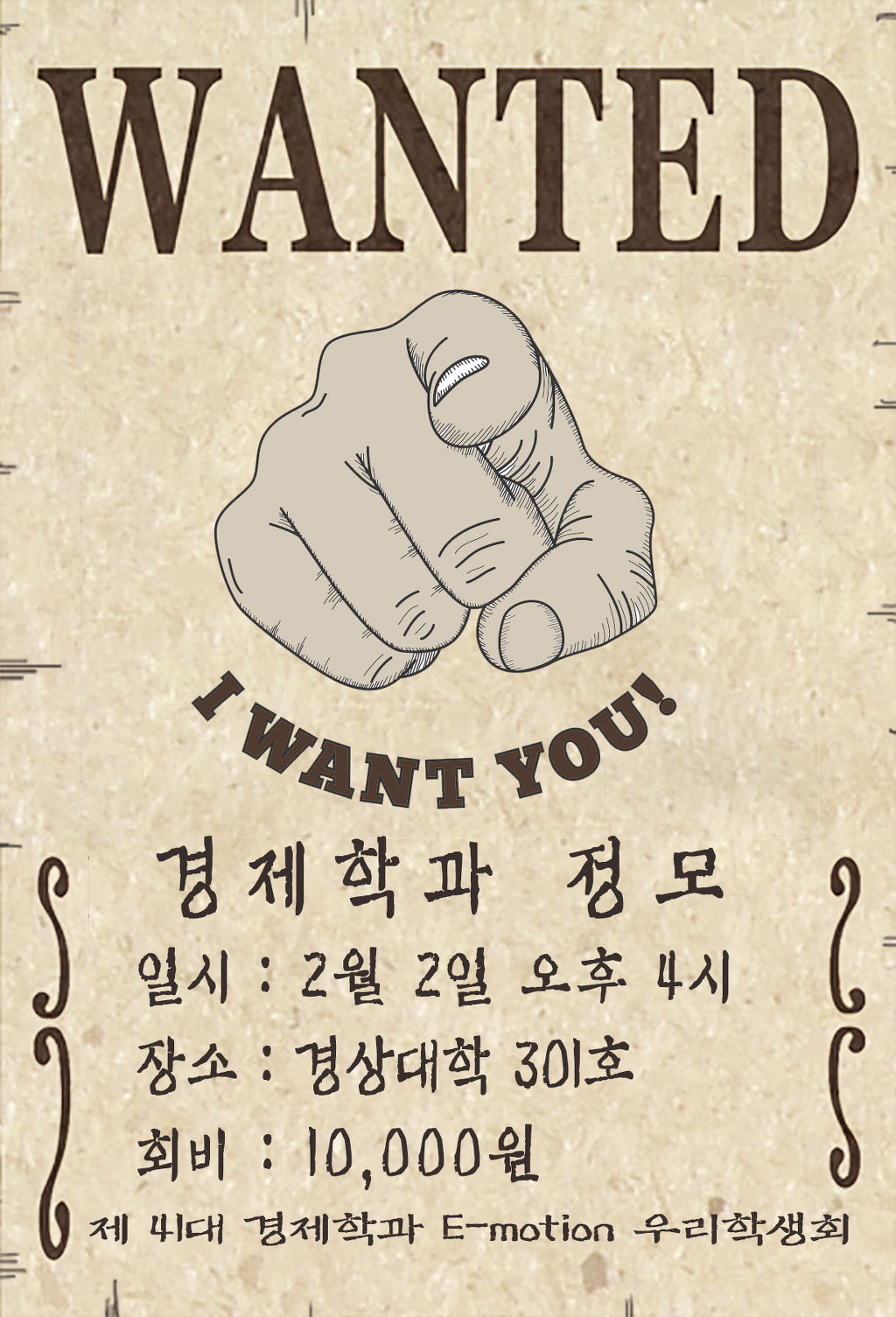 안녕하십니까! 41대 경제학과 E-motion 학생회 사무국장 최성현입니다~ 다들 방학 잘 보내고 계신가요?? 감기들 조심하시구요! 정모에 오셔서 즐거운 추억 많이 쌓으시고 선,후배 동기들과 더욱 친해질 수 있는 자리가 되었으면 좋겠습니다. ☆☆참석여부는 댓글로 남겨주세요☆☆ |