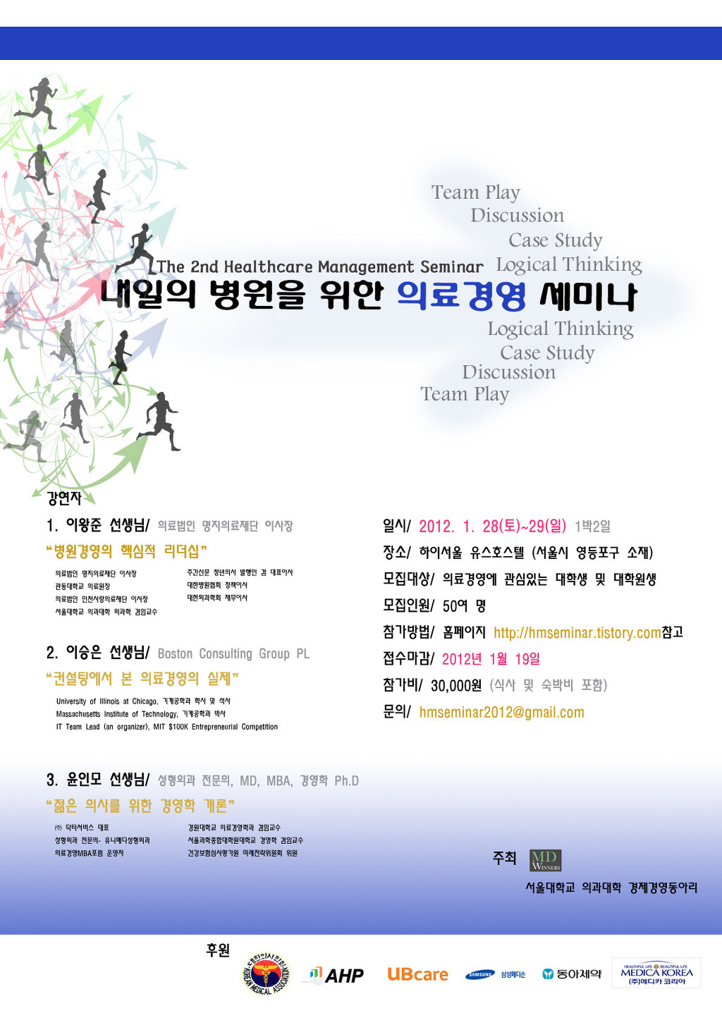 후원 : 서울대학교 의료경영고위과정(AHP), 대한의사협회, 삼성 메디슨, 유비케어, 메디카 코리아, 동아제약