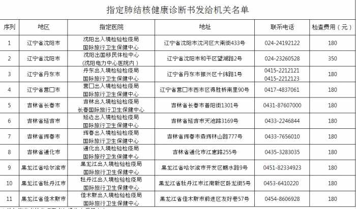 ∎ 결핵 건강진단서는 중화인민공화국국경위생검역법 및 국경위생검역법실시세칙 제102조 등에 의해 1년이상 출국하거나 1년이상 출국후 귀국하여 받아야 하는 지정기관 종합 건강진단서(國際旅行建康證明書)로 대체가능함