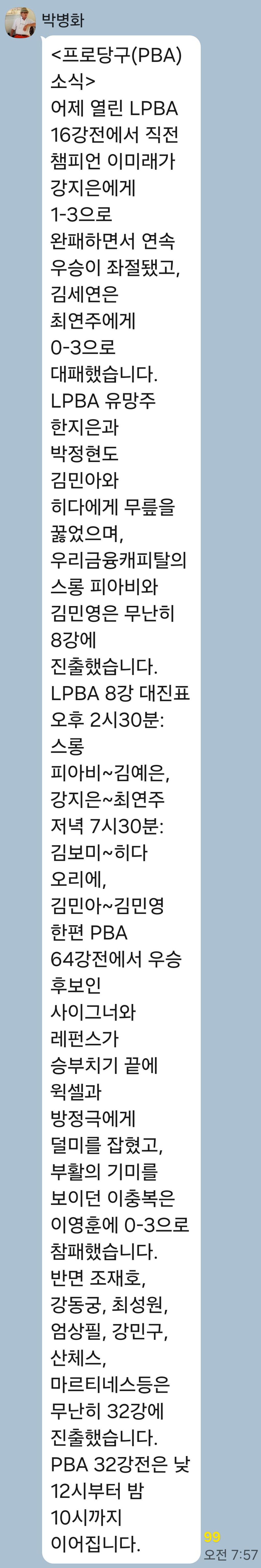 PBA 32강전은 낮 12시부터 밤 10시까지 이어집니다.