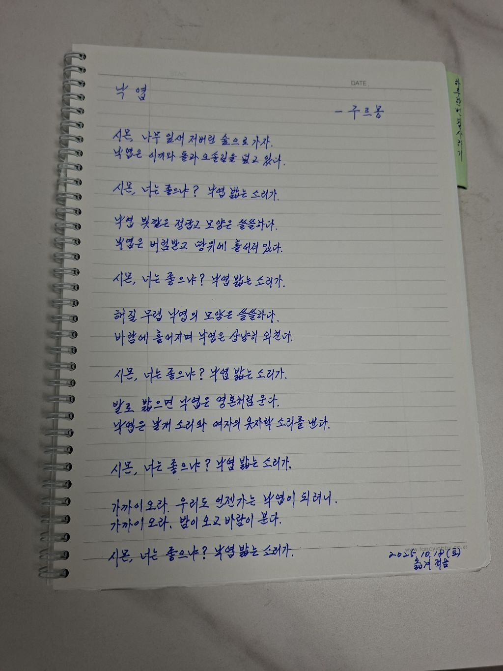 낙엽/구르몽 작성시간25.10.18|조회수12 목록 댓글 0 글자크기 작게가 글자크기 크게가 다음검색 현재 게시글 추가 기능 열기 북마크 신고 센터로 신고 댓글 댓글 0 댓글쓰기 답글쓰기 댓글 리스트