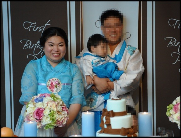 아이의 거뭇한 머리로 보아 돌잔치인듯 합니다..
