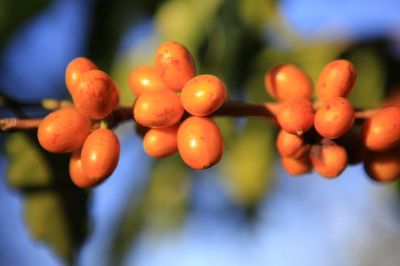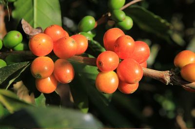 빨간색의 커피열매를 보고
