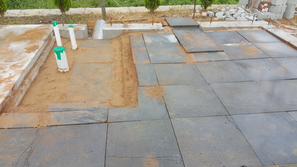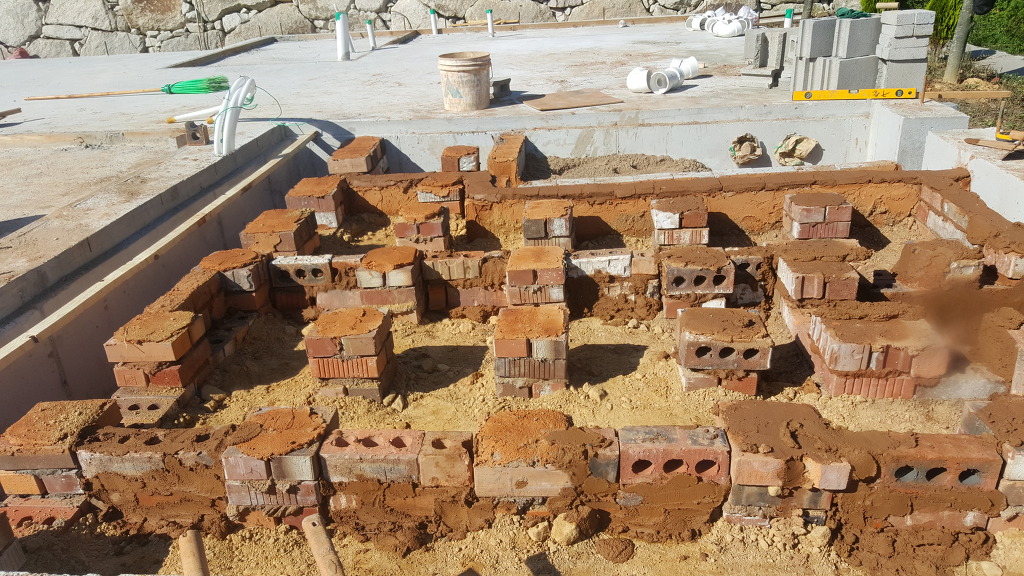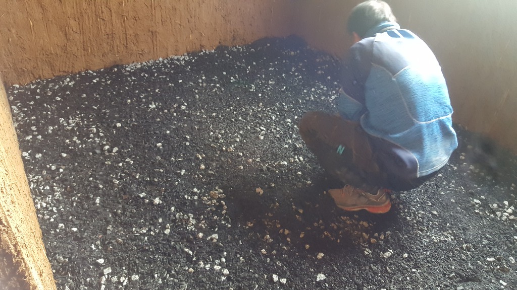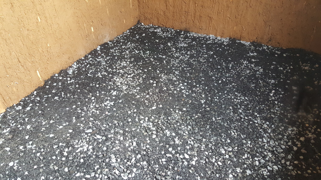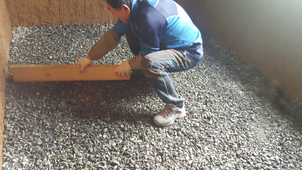 구들장위에 축열용 자갈과 원적외선이 많이 나오는 맥반석을 깔고 있다.