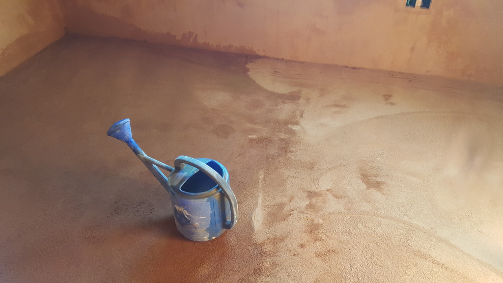 수평고르기가 끝나면 물을 뿌려 다져준다.