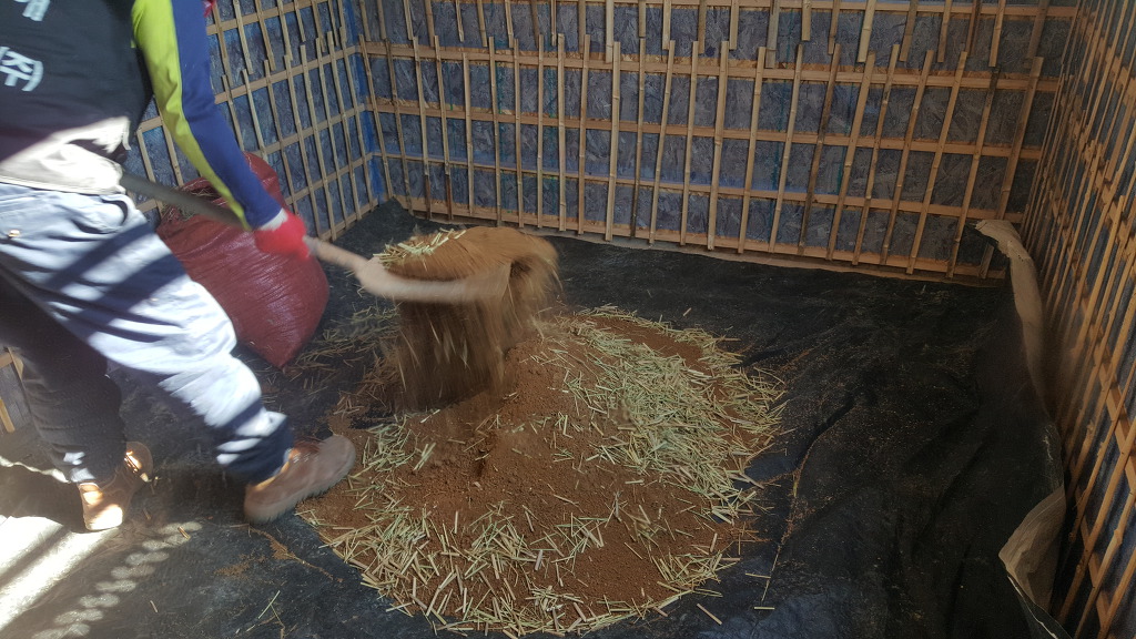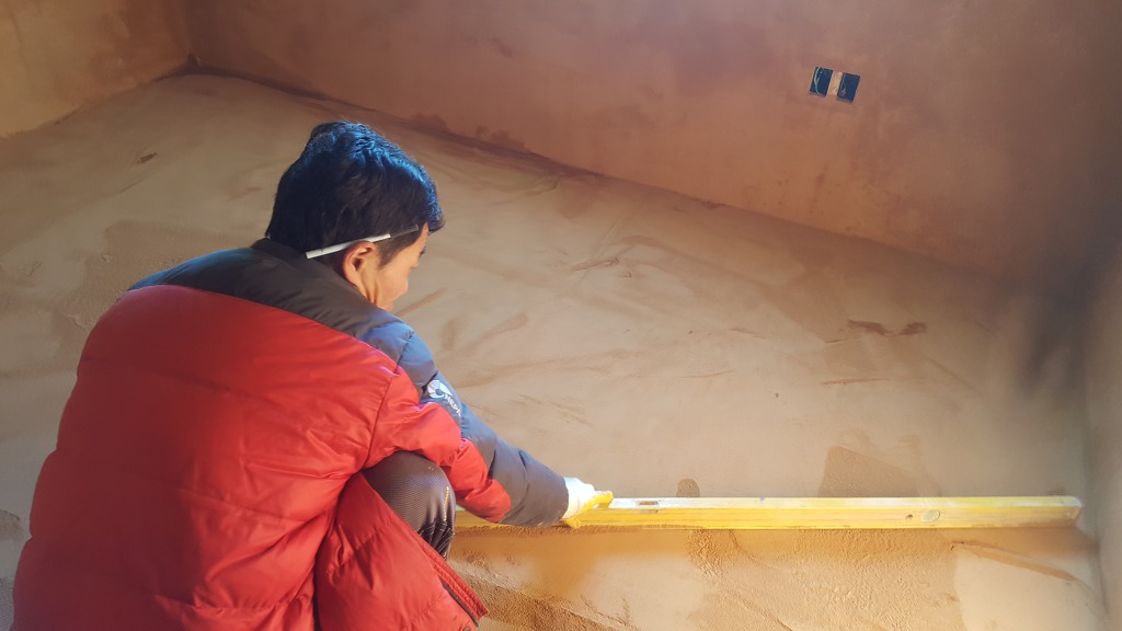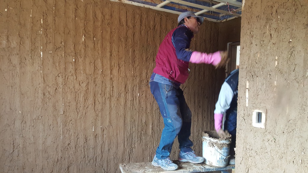 전통방식으로 시멘트를 섞지않고 친환경 황토방 시공