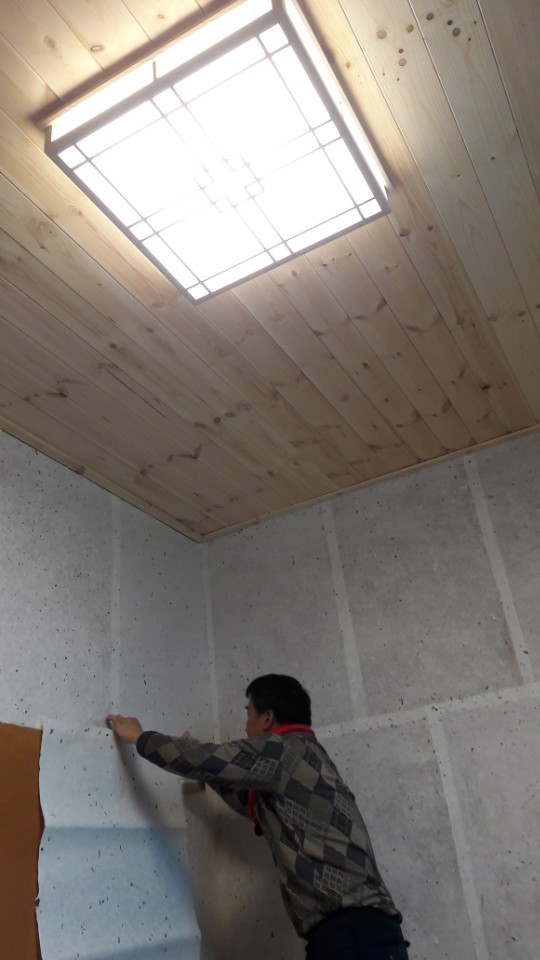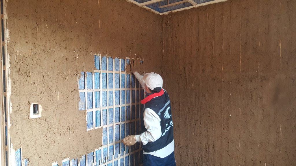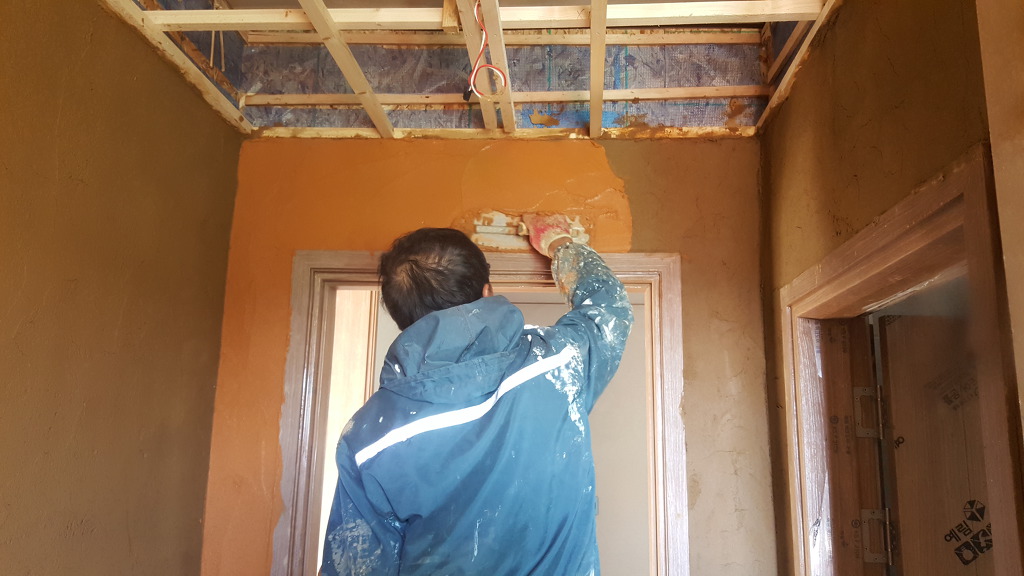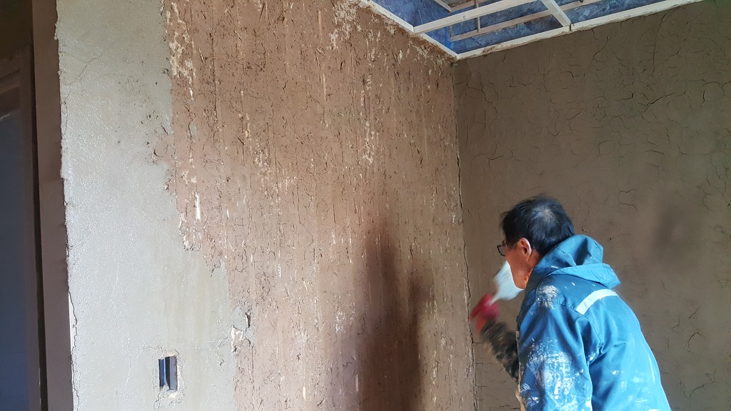 벽체 :시멘트를 사용하지않은 전통 방식으로 황토방 벽체 시공