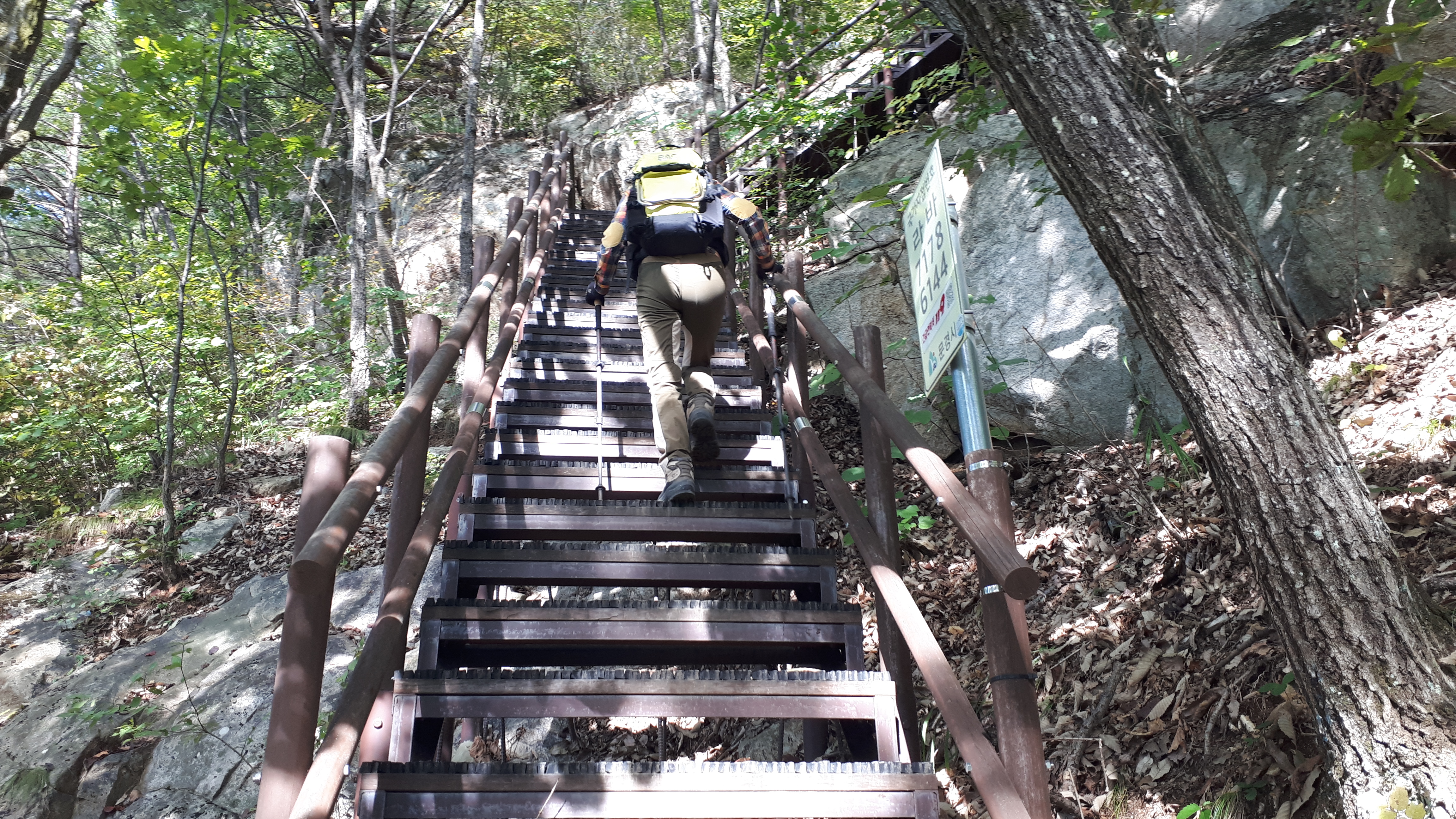 첫 번째 데크계단을 지난 오름길은 두 번째 데크계단 앞에서 잠시 쉬었다가 올라갑니다.