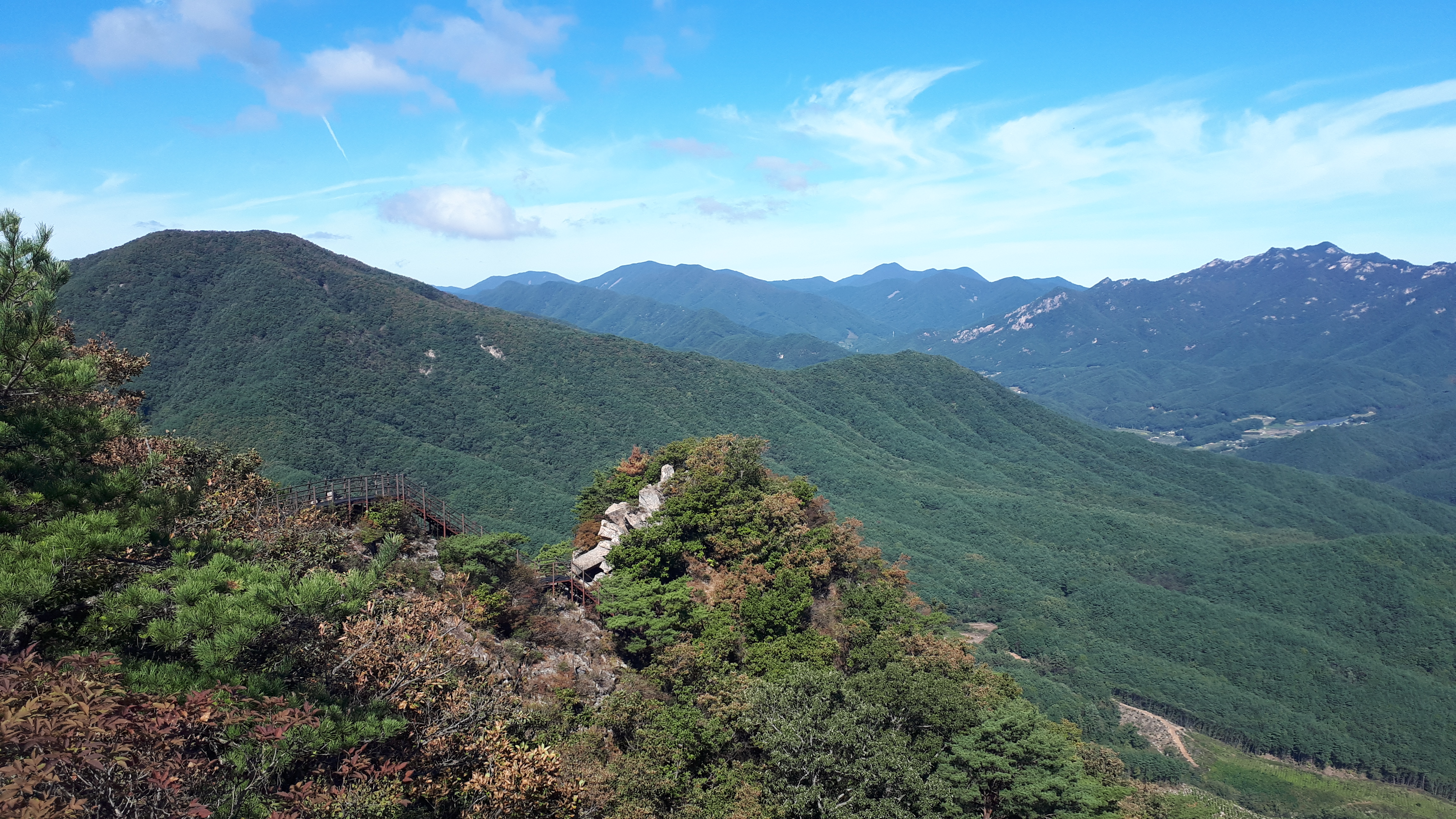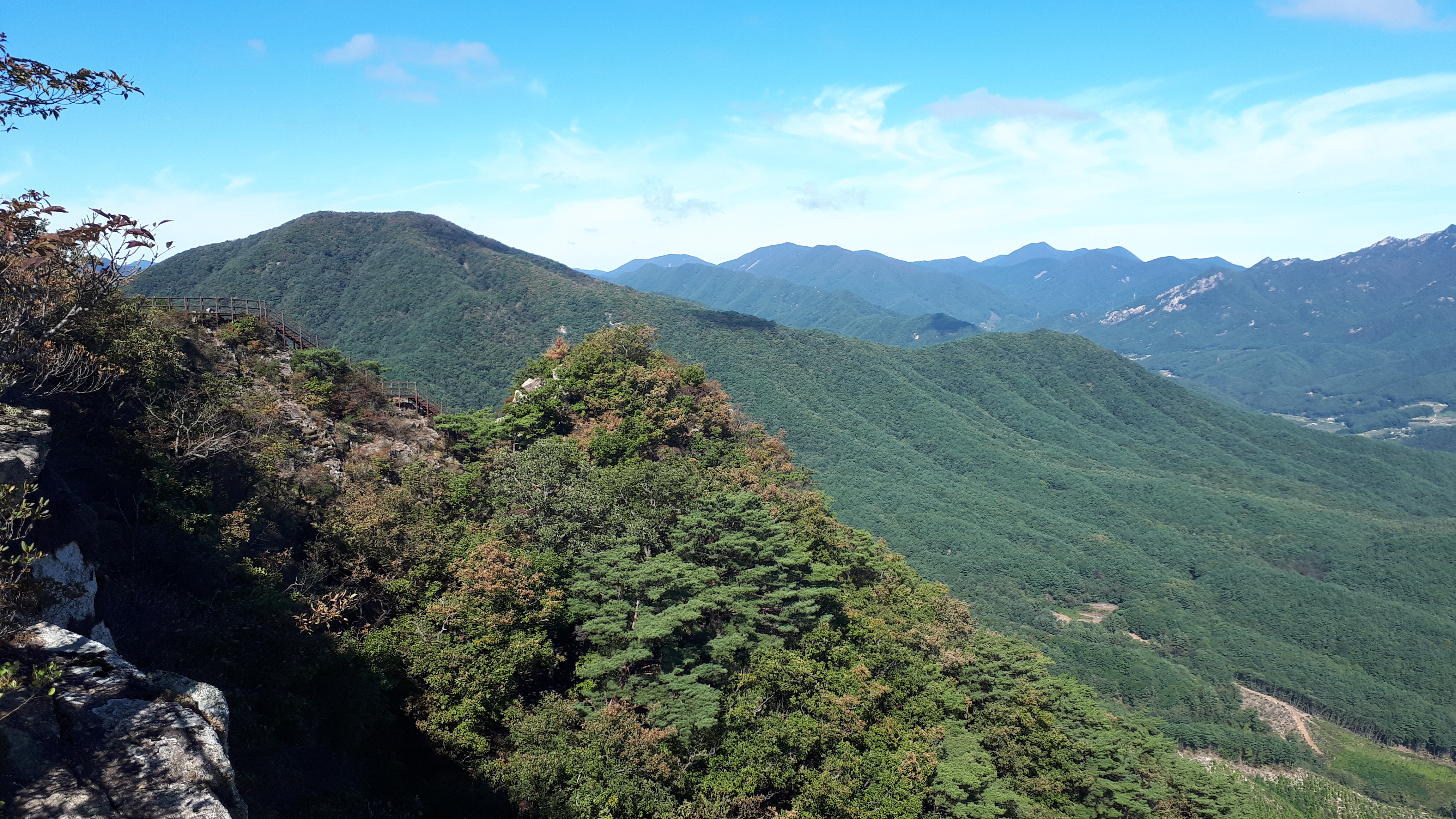 세 번째 데크계단을 지난 오름길은 조망이 트이는 암릉으로 이어집니다.