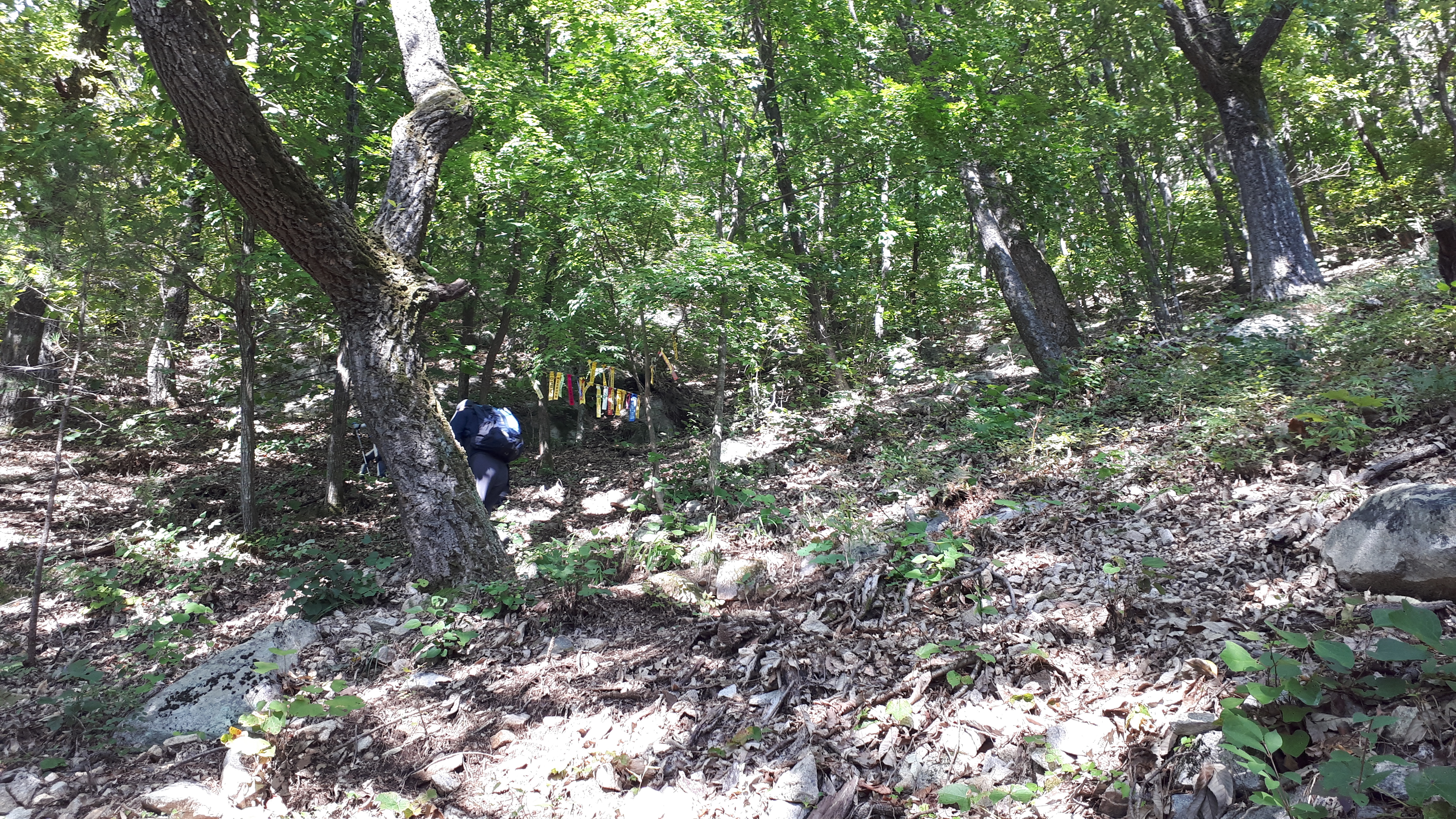 천주사 마애불을 둘러본 걸음은 선답자들의 시그널이 많이 붙은 가파른 숲속 등산로로 올라갑니다.