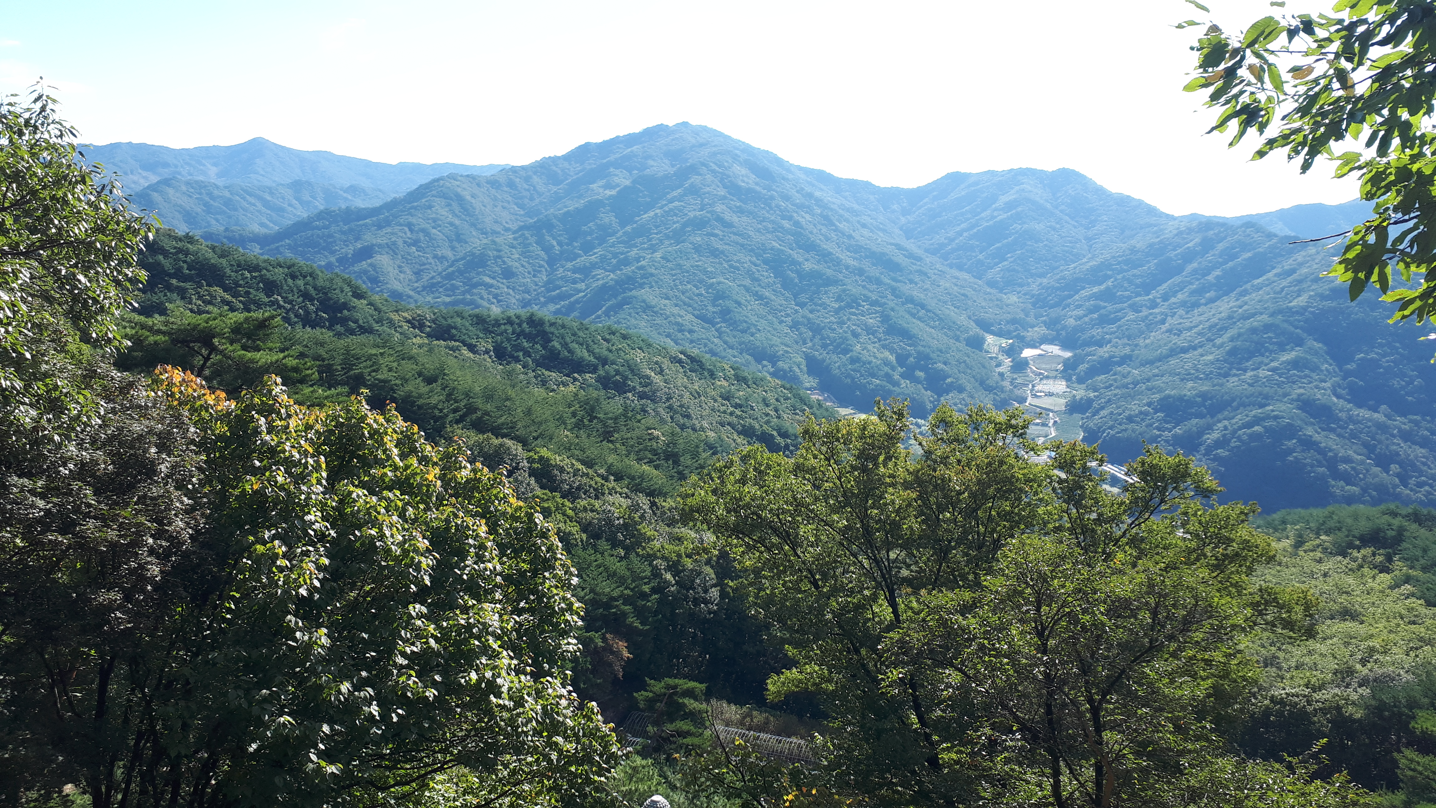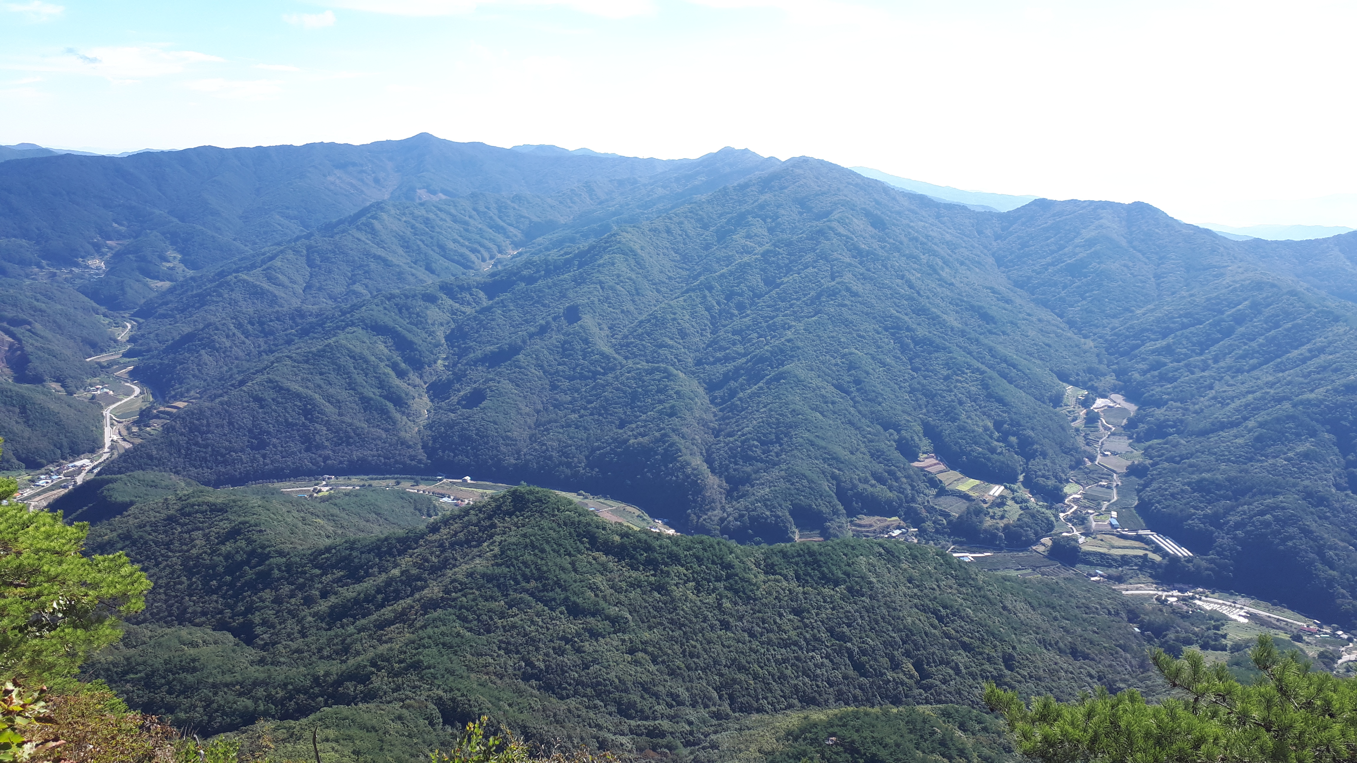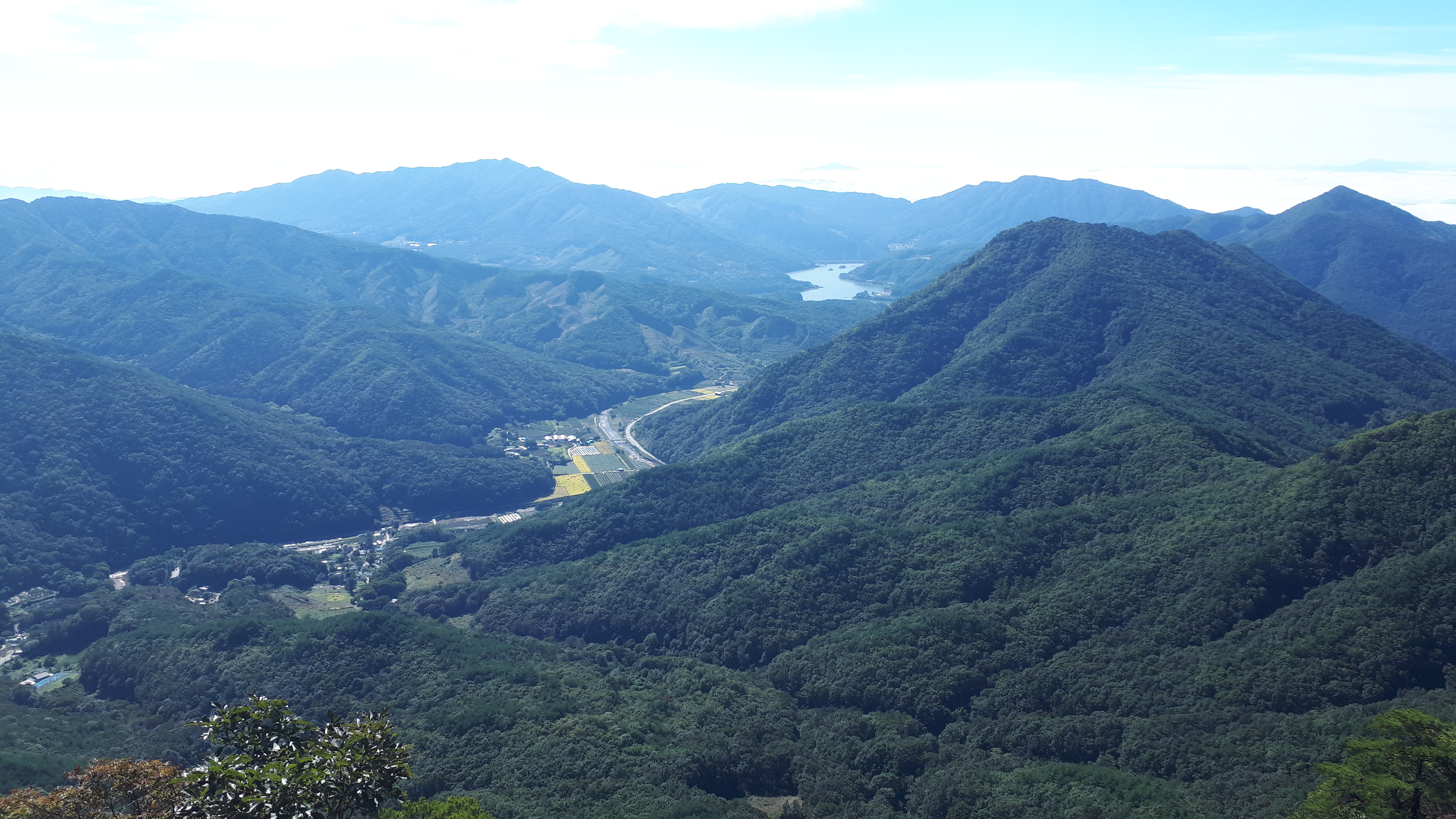 왼쪽 능선 뒤로는, 바로 앞의 문경 공덕산(913m) 뒤로 백두대간 문경 대미산(1115m)까지 시원스레 조망됩니다.