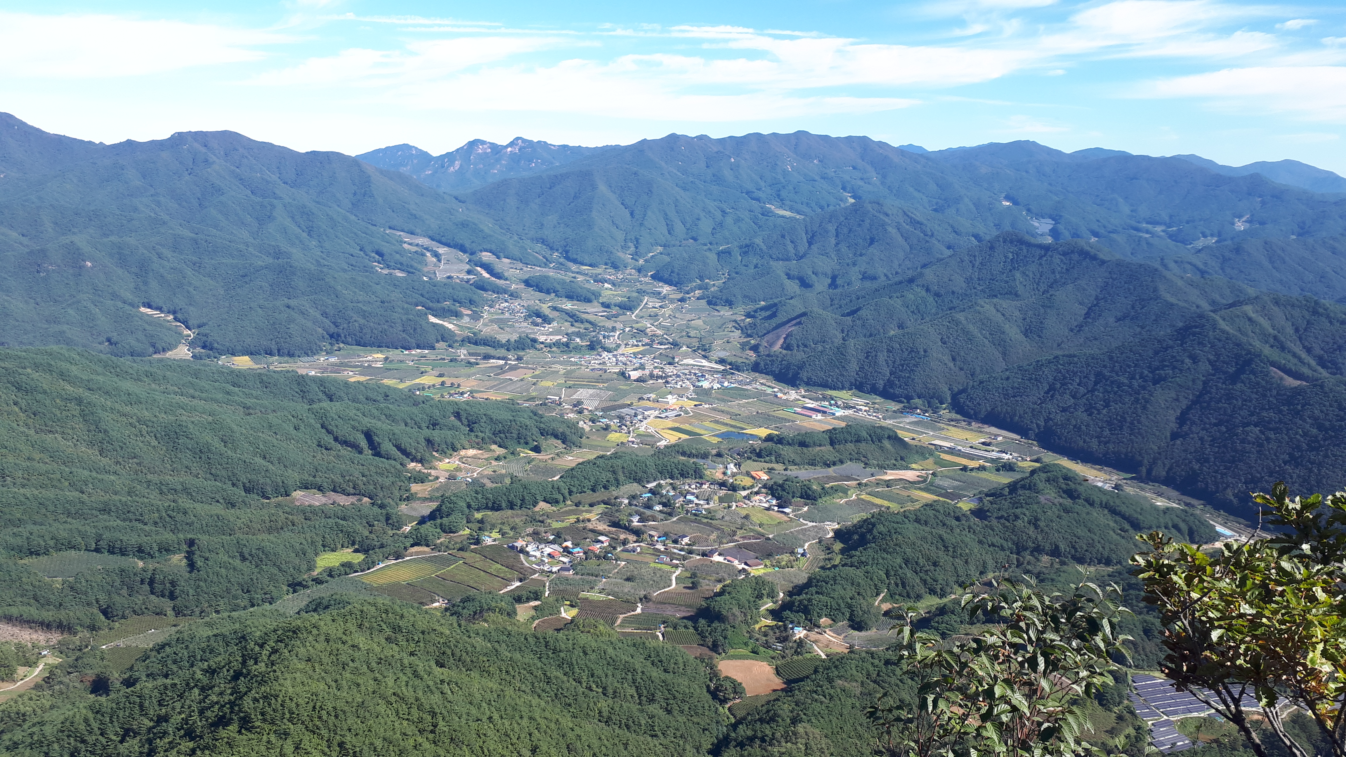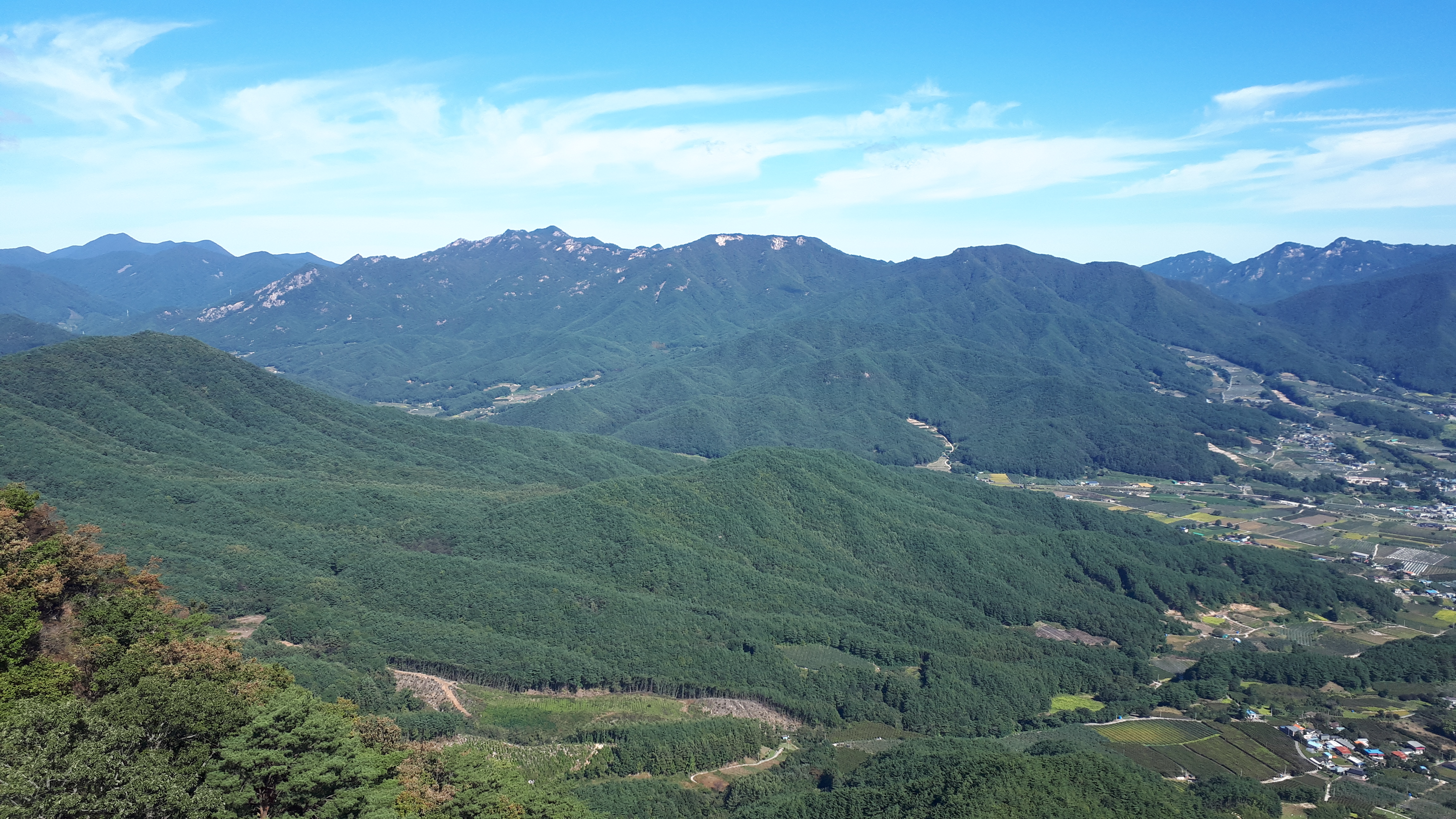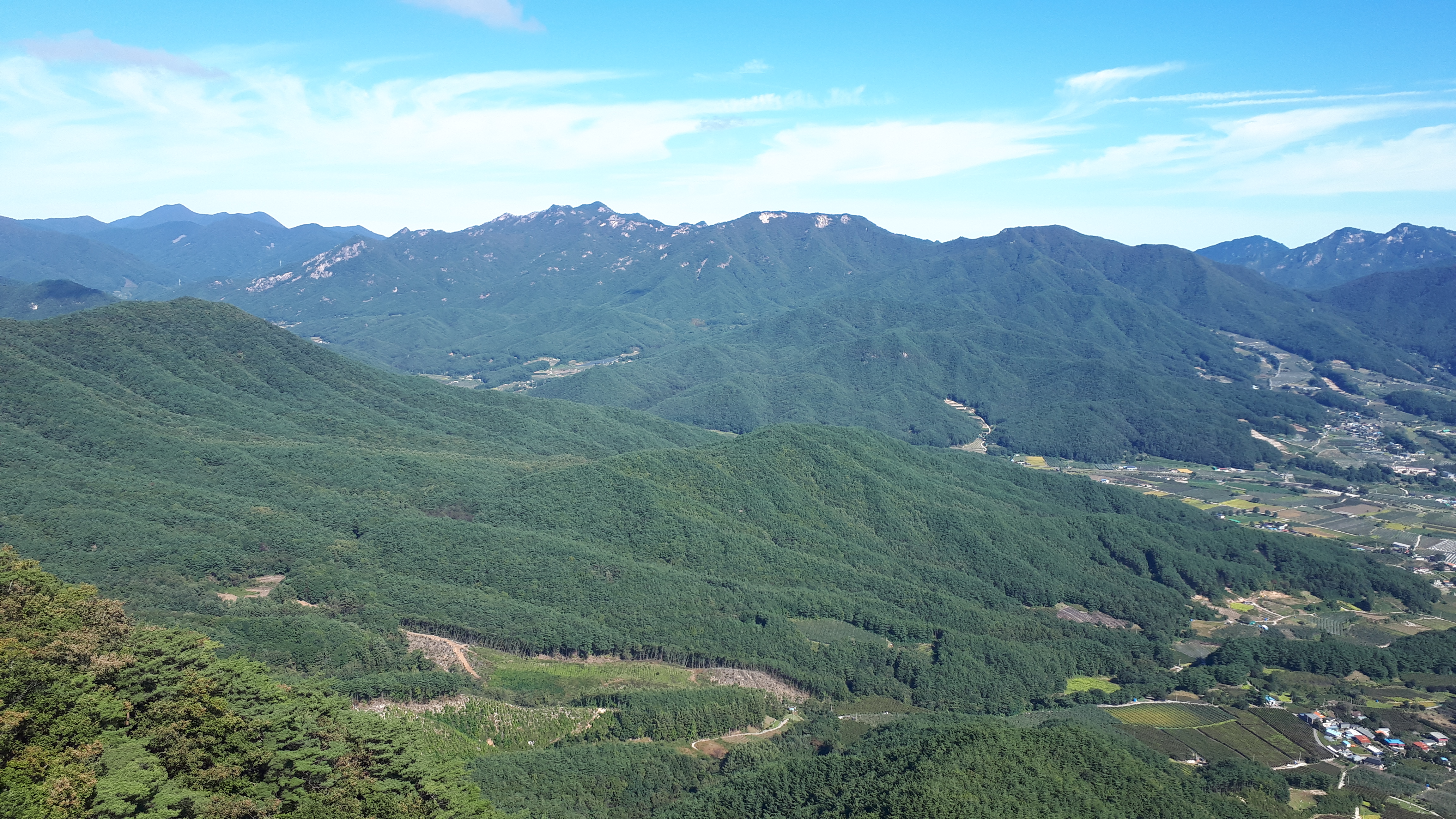 왼쪽 능선 뒤로는, 바로 앞의 문경 공덕산(913m) 뒤로 백두대간 문경 대미산(1115m)까지 시원스레 조망됩니다.
