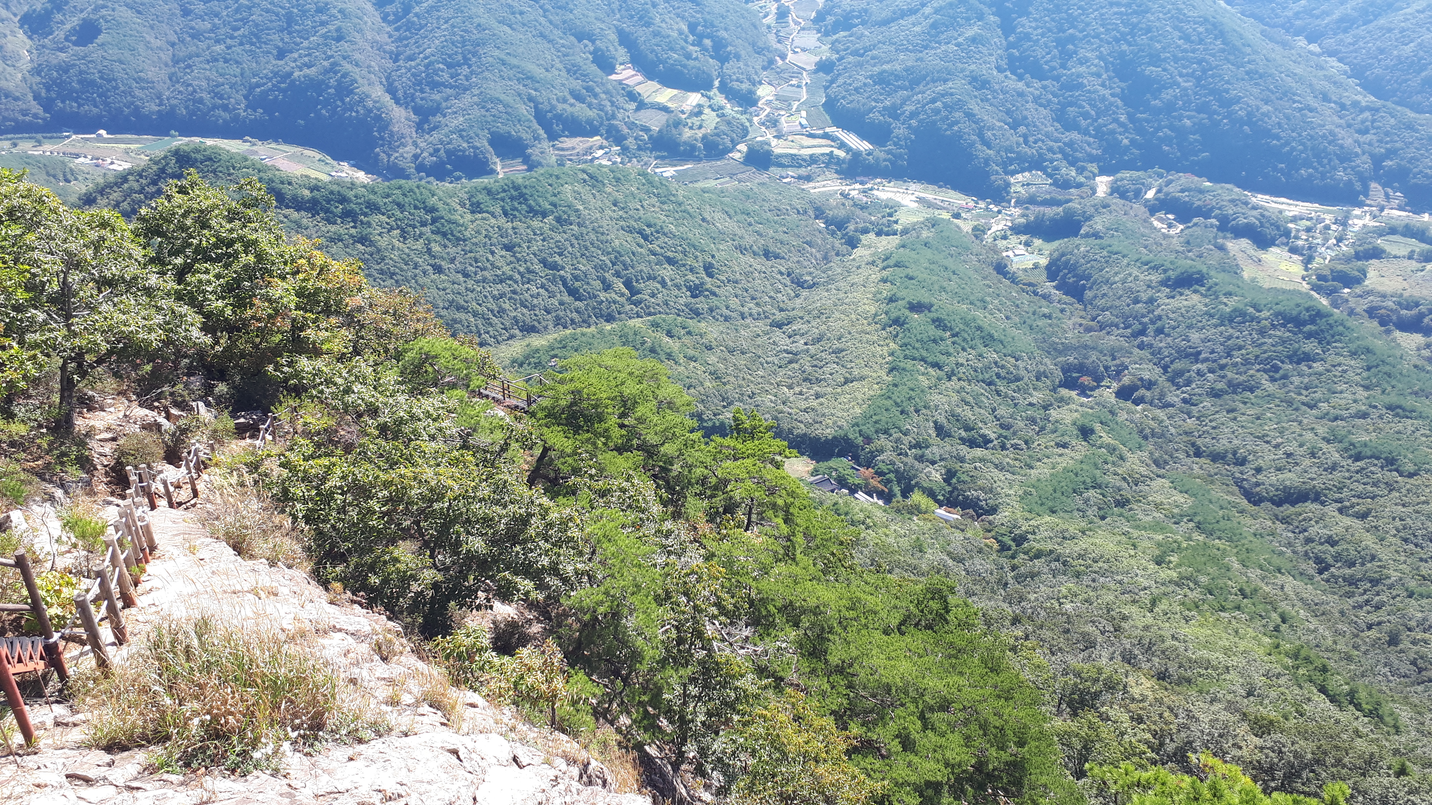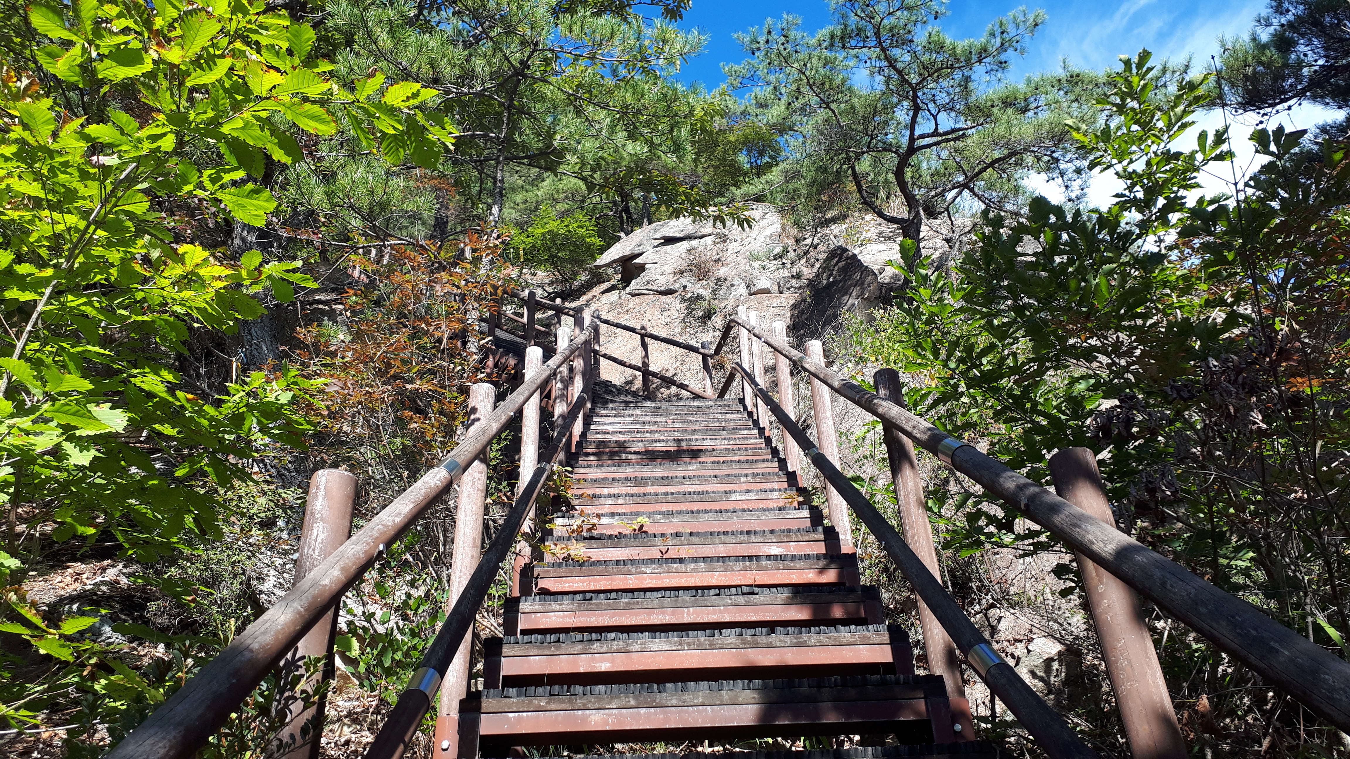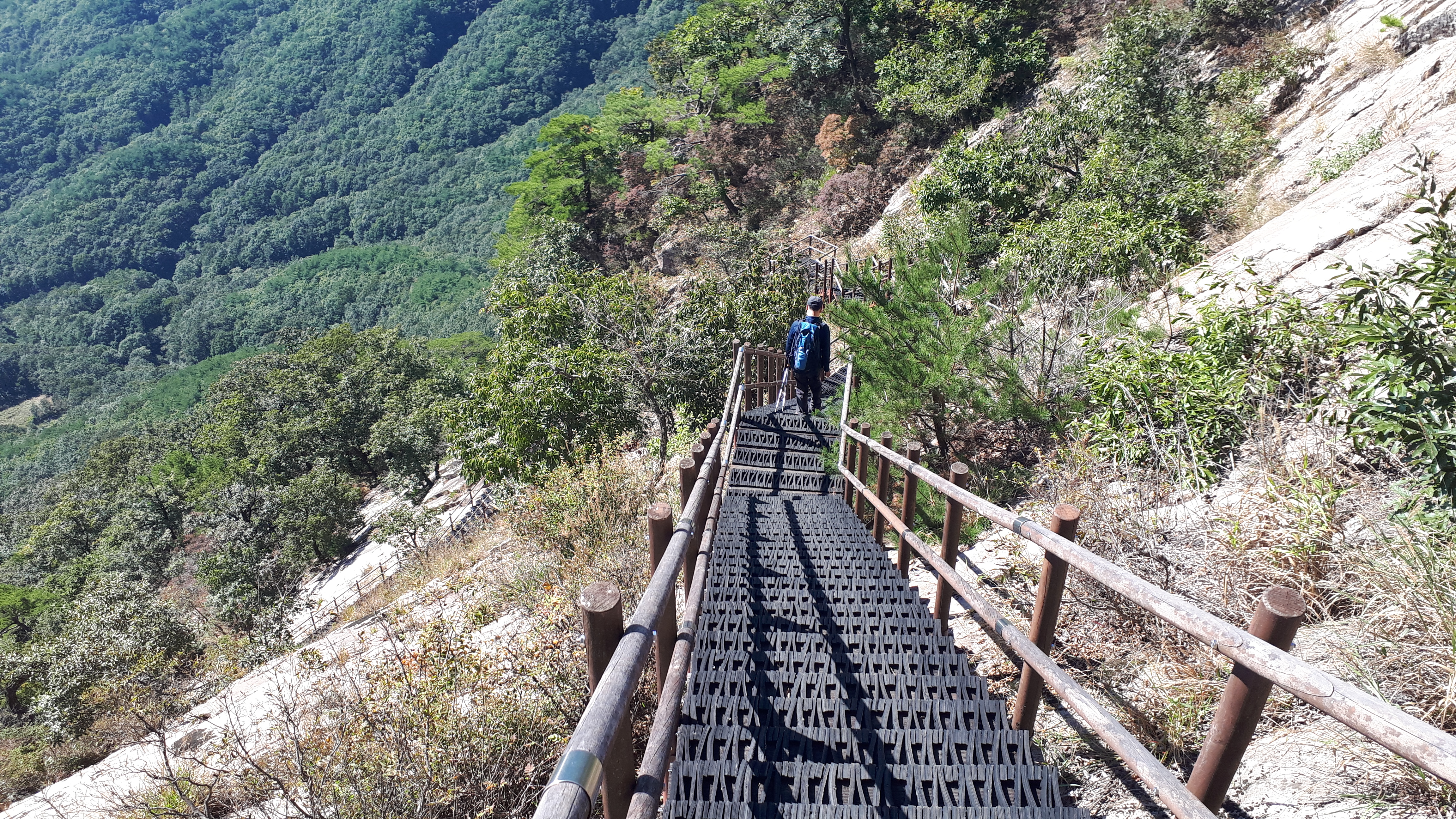 올라왔던 길을 되짚어 가파른 데크계단 길을 내려갑니다.