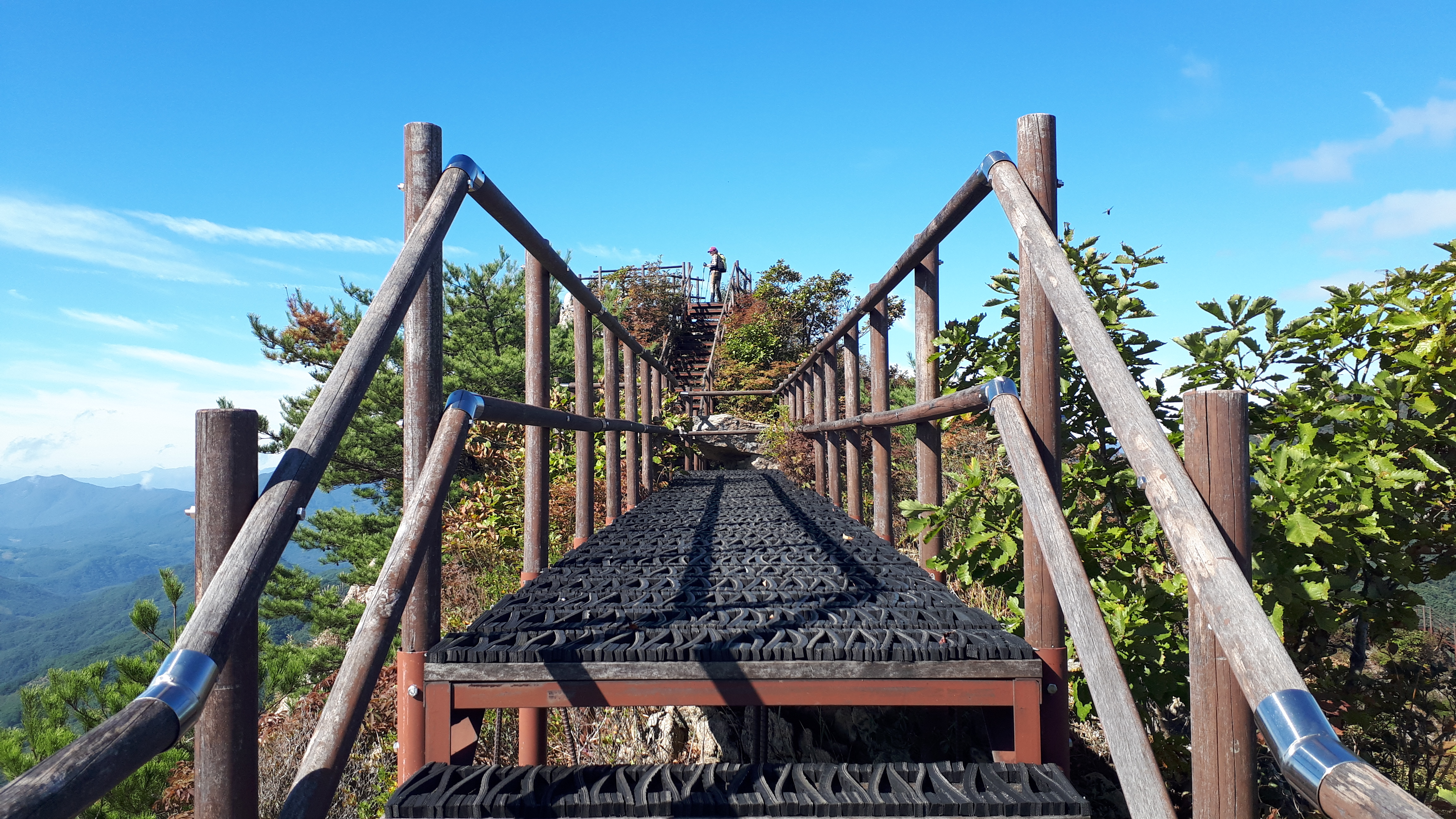 오름길은 왼쪽으로 조망이 열리는 세 번째 데크계단을 올라갑니다.
