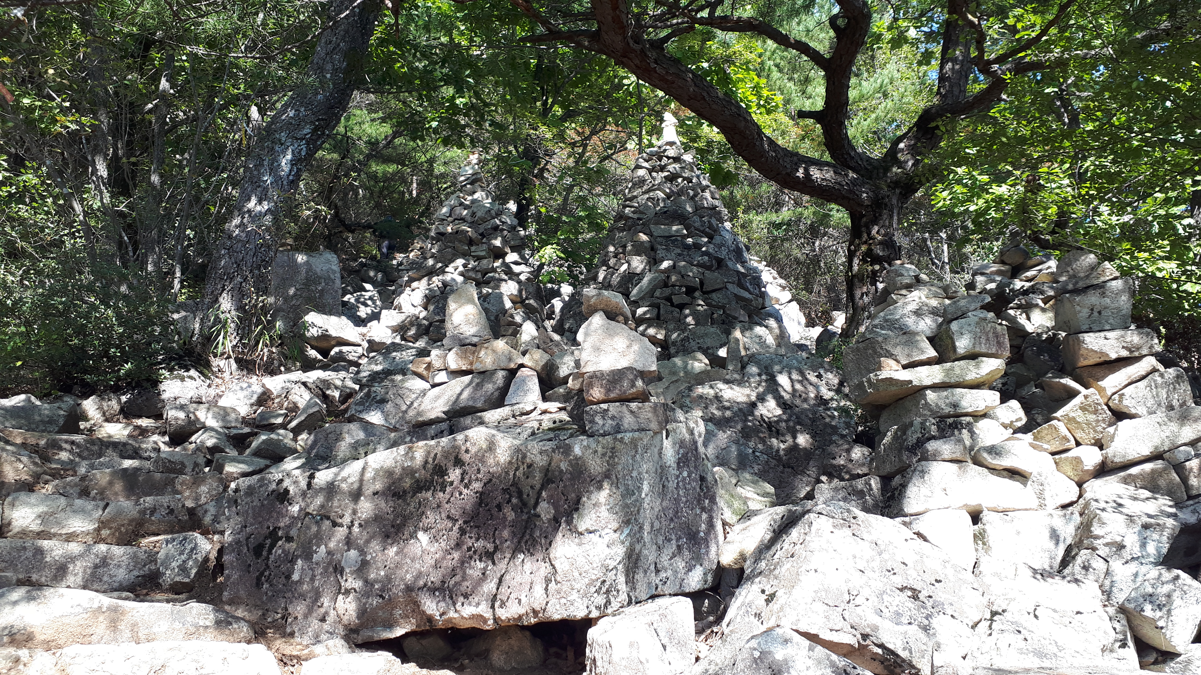 두 번째 데크계단을 지나면, 누군가의 정성스런 소원들이 담겨있는 돌탑군이 있습니다.