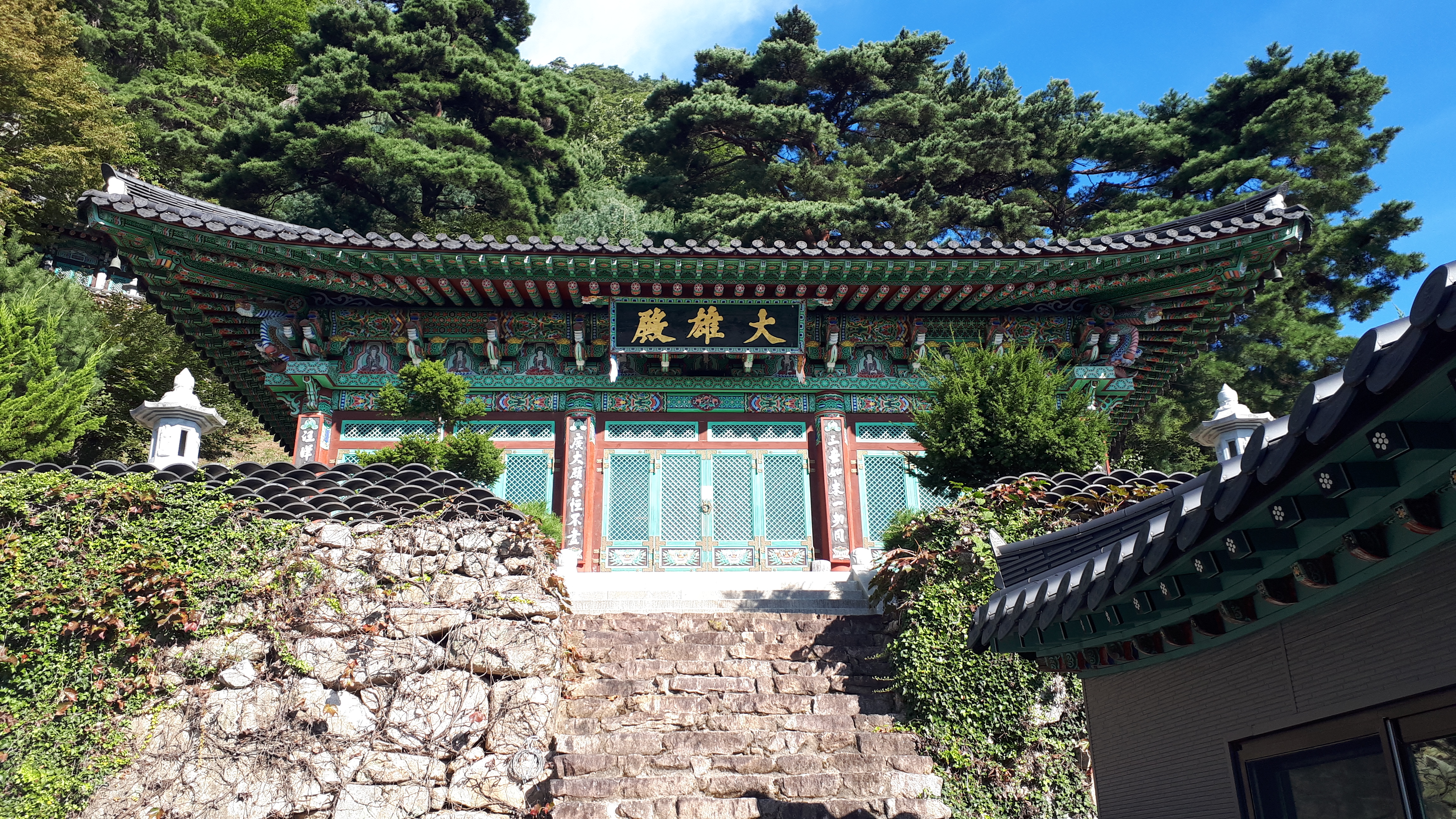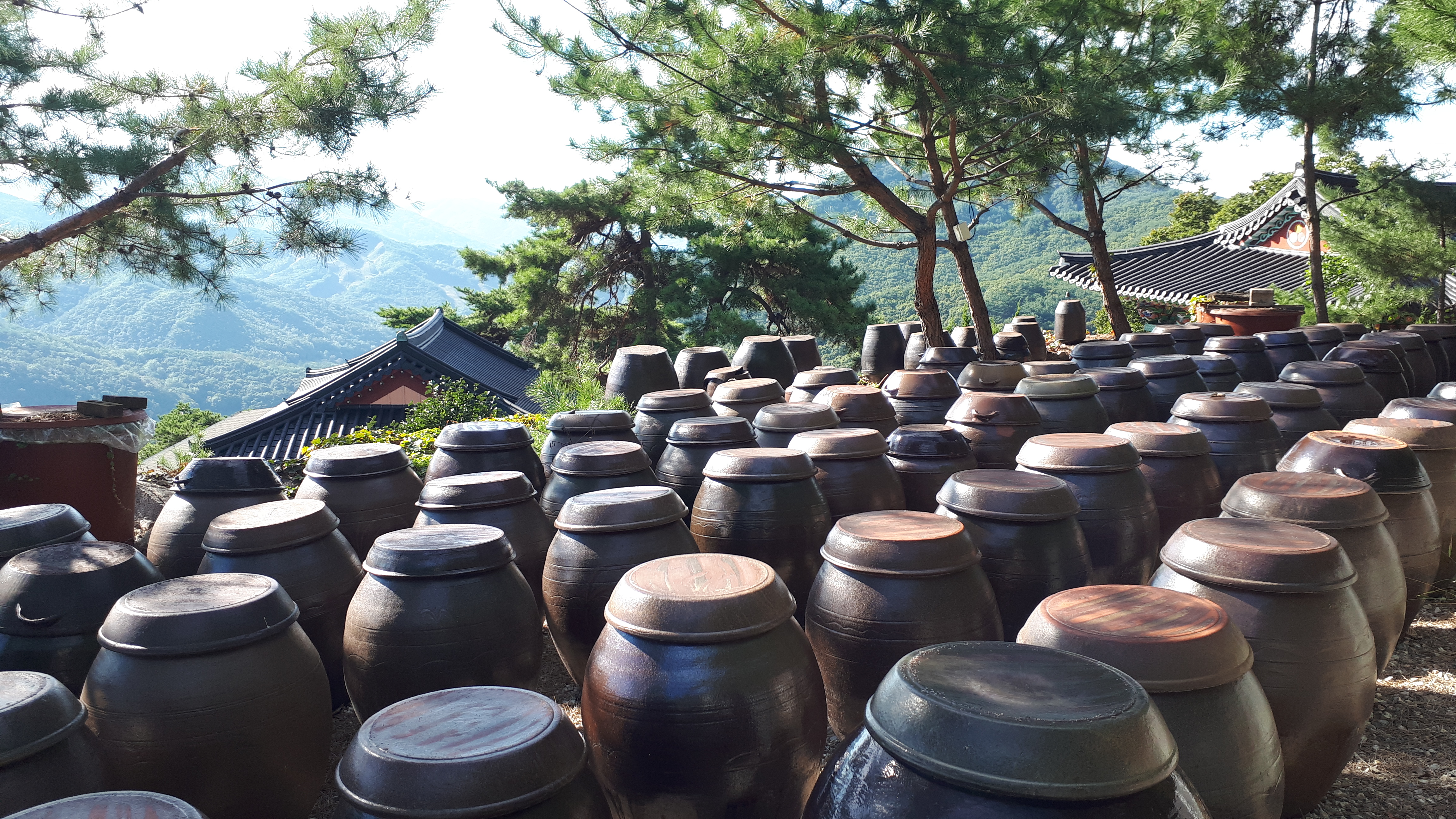 천주사 대웅전을 지난 걸음은 빨간 입술로 화장을 한 미륵불상 앞에서 정감이 가는 천주사 장독대에 시선이 갑니다.