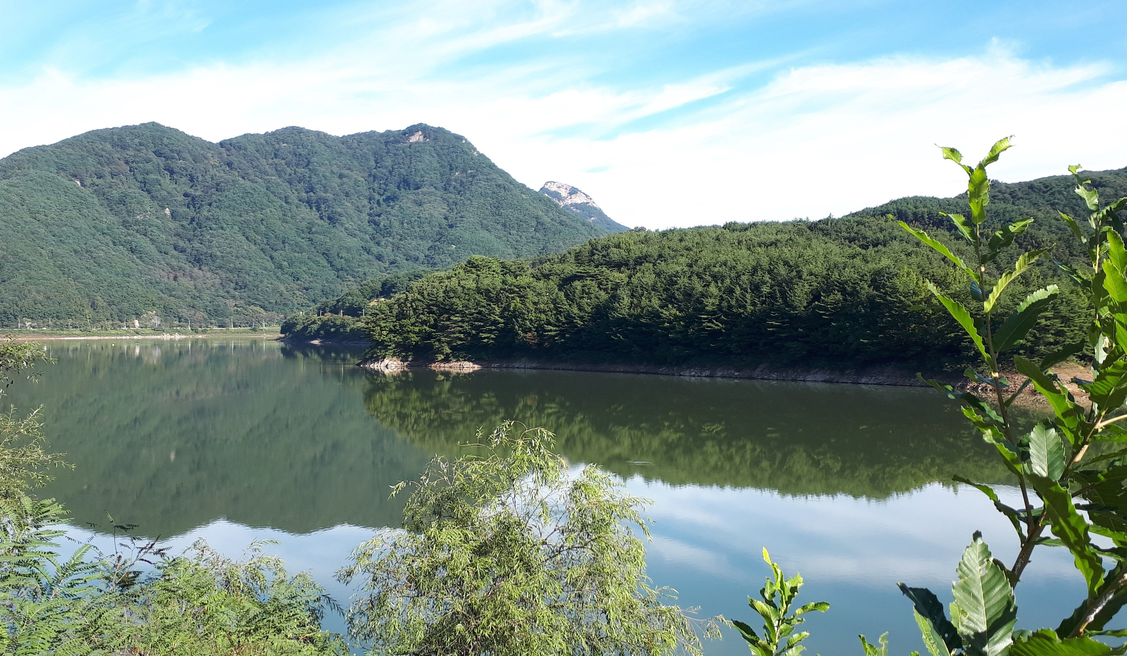 두 번째 데크계단을 오르면, 왼쪽으로 한반도 모양의 경천호가 보이기 시작합니다.