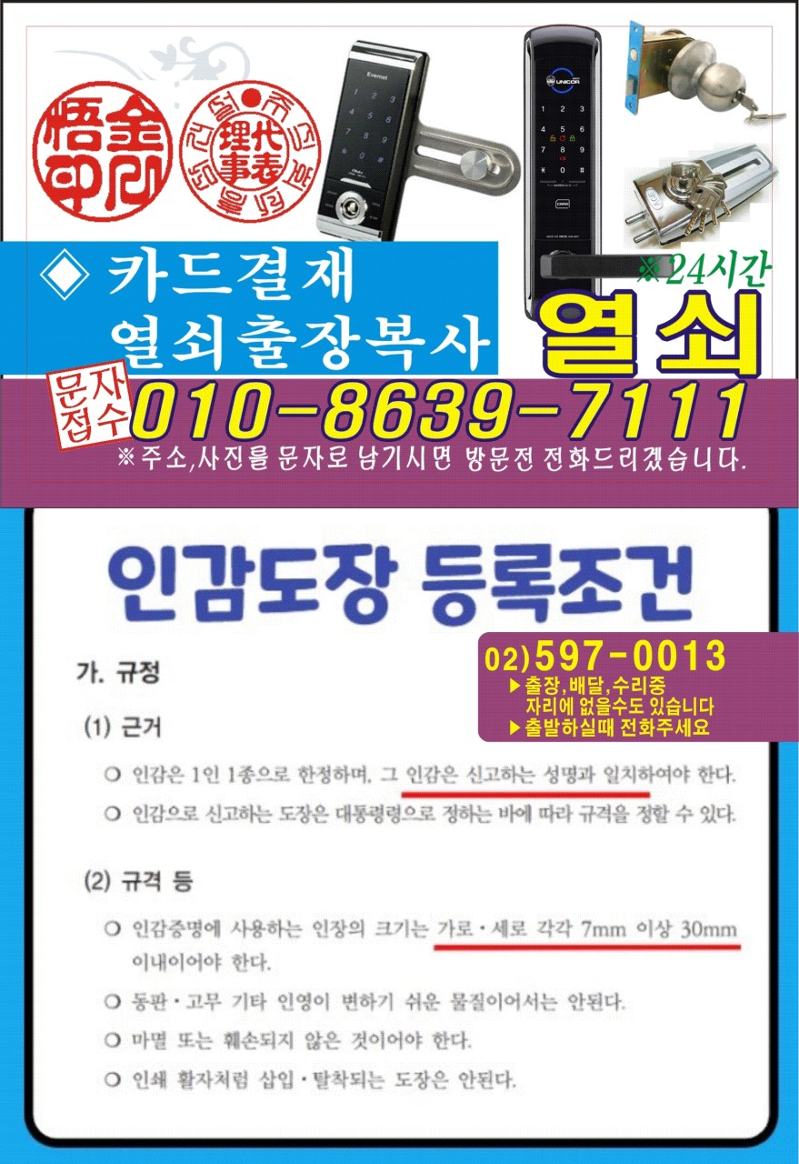 24열쇠/인감도장 =관악구 봉천 동신림 남현동 행운 낙성대역 신원동