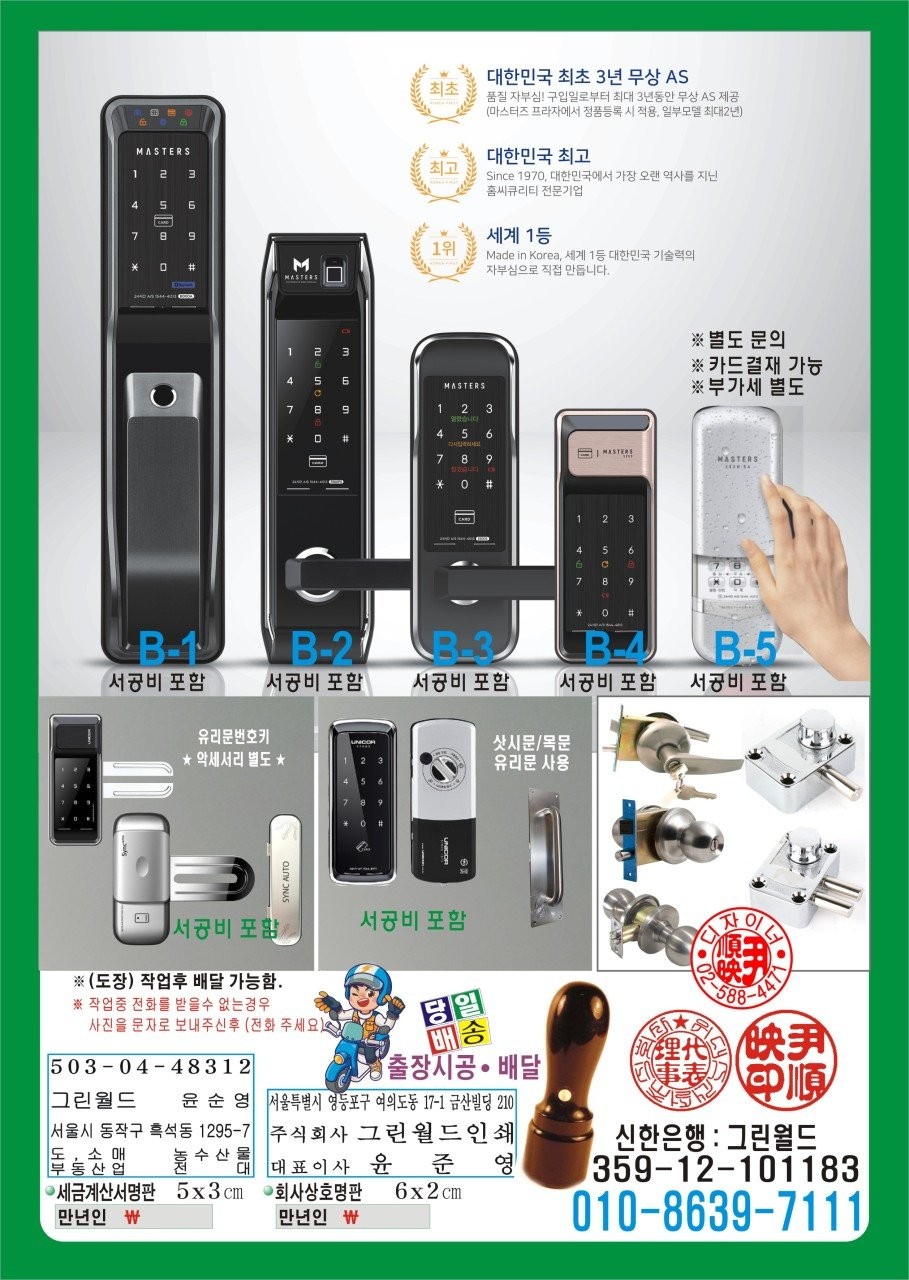 작성자인감도장 애드 디자인작성시간25.03.02조회수34 목록 댓글 024열쇠출장수리 반포동 잠원동 010=8639=7111 인감도장(배달)회사법인 사업자만년인 현관도어락 유리문 무타공 번호키