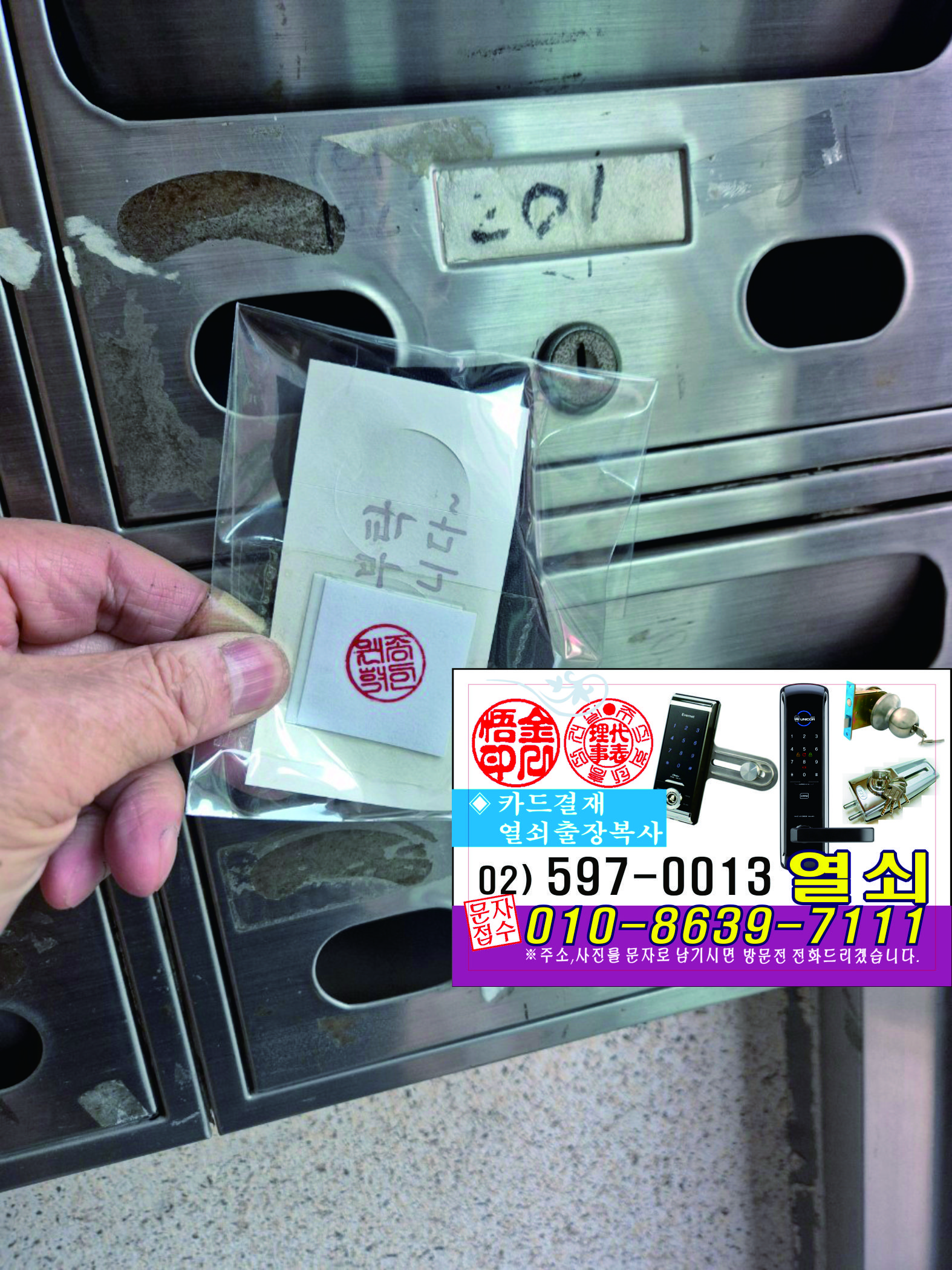 열쇠수리출장으로 자리에 없을면 문자주세요