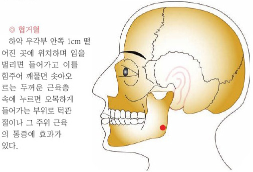 ○ 뺨의 예골 아래쪽(頰銳骨下) 우묵한 곳에 있다[입문].