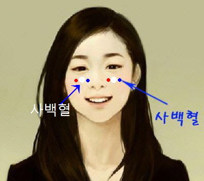 눈동자를 중심으로 3cm정도 아래로 내려간곳이 사백혈입니다.