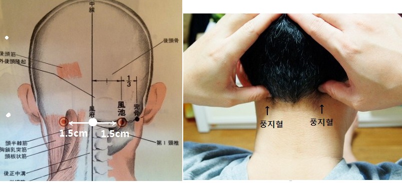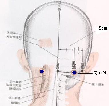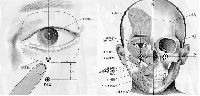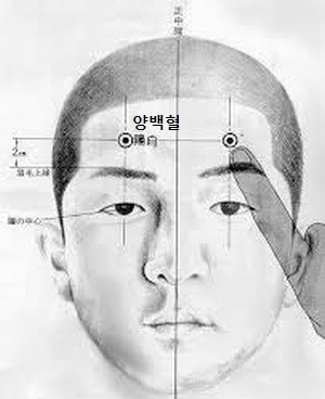 사백혈의 위치. 정면을 똑바로 보았을때