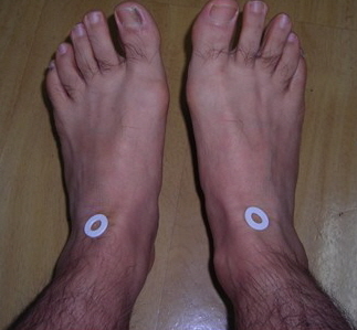 가상의 선상에서 앞 발목 정중앙 정주앙에 위치한다