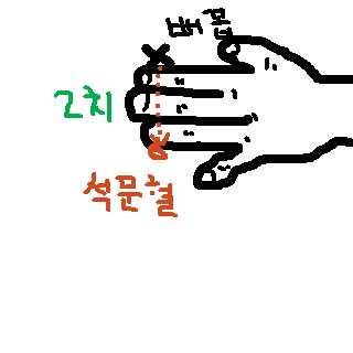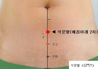 석문혈은 치료받는 분 본인이 자기 배꼽 아래로 자기 손가락을