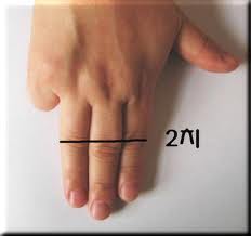 검지,중지,약지(2,3,4번째 손가락을 가로로 붙인) 길이만큼 내려가서 있다.