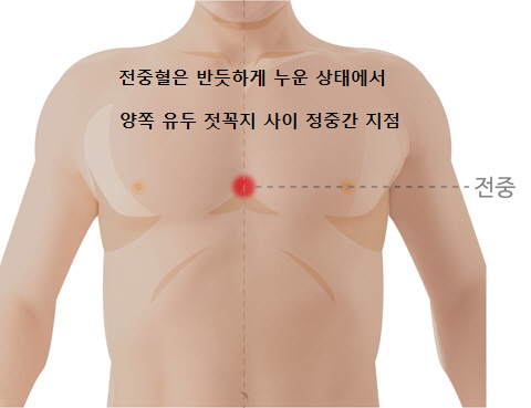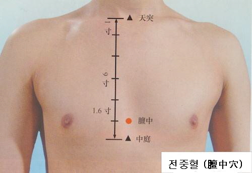 가슴에 있는 혈자리중에 '전중혈(膻中穴)'이라는 혈자리가 있다.