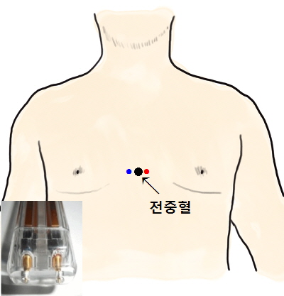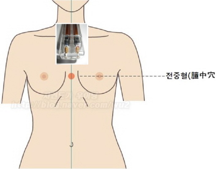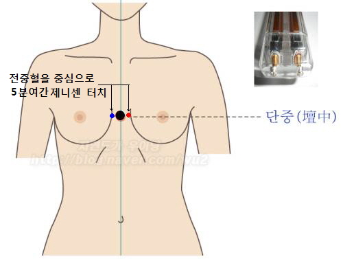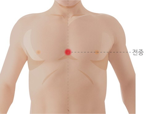 가슴에 있는 혈자리중에 '전중혈(膻中穴)'이라는 혈자리가 있다.