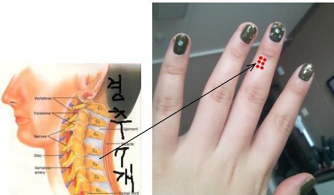 첫날 1월 28일은 경추 4번. 5번의 상응부위만 터치하도록 하여
