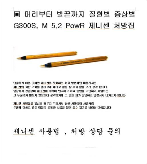 손사랑뜸사랑에서 제니센을 구입하시는 분들께 무상 증정하기 위해 만든 처방전으로로
