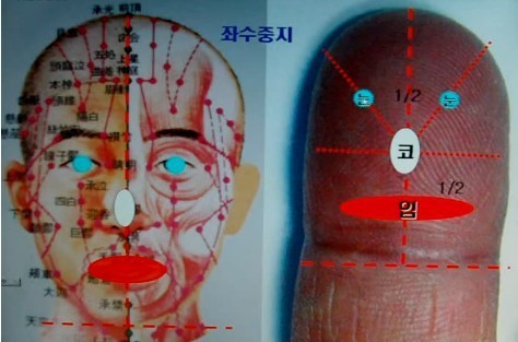 아래의 그림을 살펴보면서 눈 상응부위를 찾아 눈상응부위에 제니센 청색을 5분~10분정도 터치 합니다