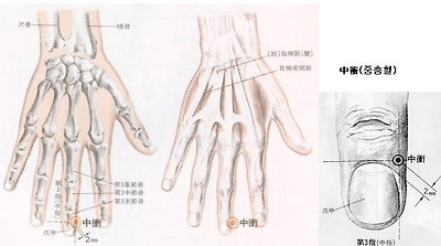 손등 네 번째 손가락과 다섯 번째 손가락 사이의 움푹한 곳이 중저혈 입니다
