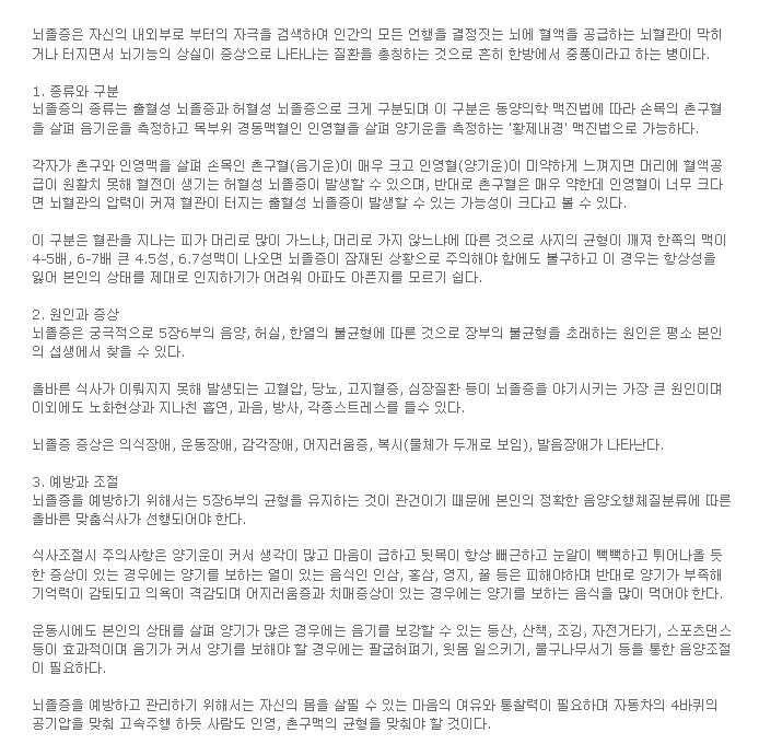 올려드리는 글 내용은 뇌질환 중풍이 오기전에 생기는 현상에 대한 내용과