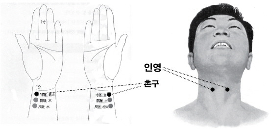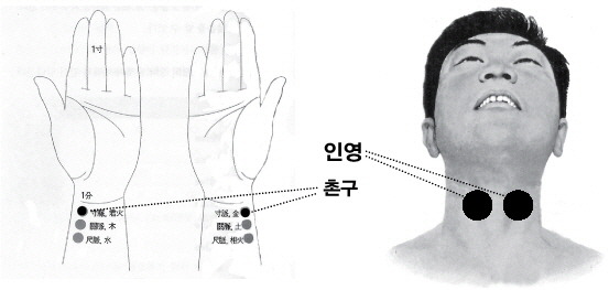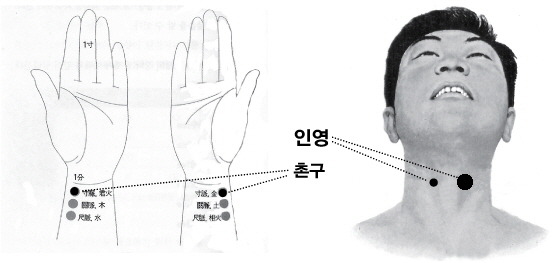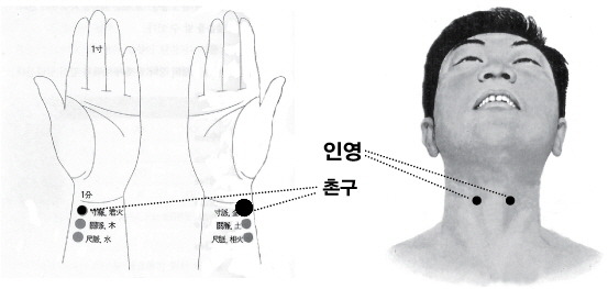 촌구맥과 인영맥의 크기를 비교하여 중풍 전조를 진단할수 있는 방법인데