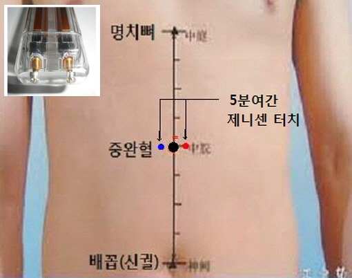 거궐혈과 복부의 중완혈을 집중적으로 5~10분 정도씩 터치하고
