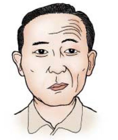 증상을 보면 편마비로 인하여 한쪽 이마에 주름살이 생기지 않고