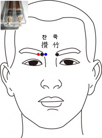 좌우 양쪽 눈섭 안쪽 끝나는 지점이 찬죽혈 입니다