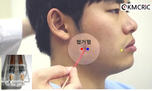 윗 어금니와 아래어금니가 만나는 곳이 약간 솟아 오르게 되는데 솟아 오르는곳이 협거혈입니다