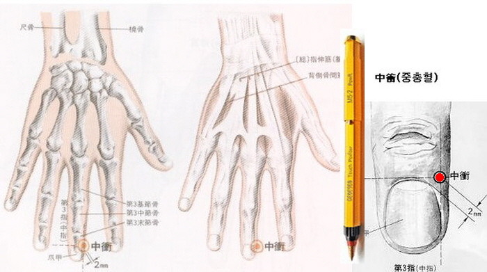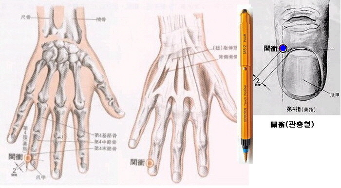 은백혈 제니센 적색 3분터치 → 내정혈과 함곡혈에 각각 제니센 청색 3분씩 터치