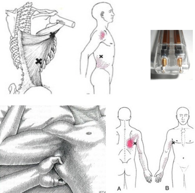 x 는 통증 제니센 치료처 이며 붉은 부위는 방사통입니다