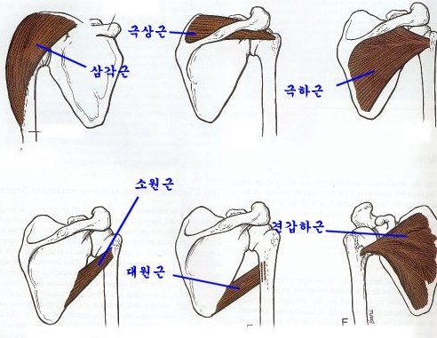 극하근(Infraspinatus) - 상박을 외측으로 회전시키는 작용을 합니다.