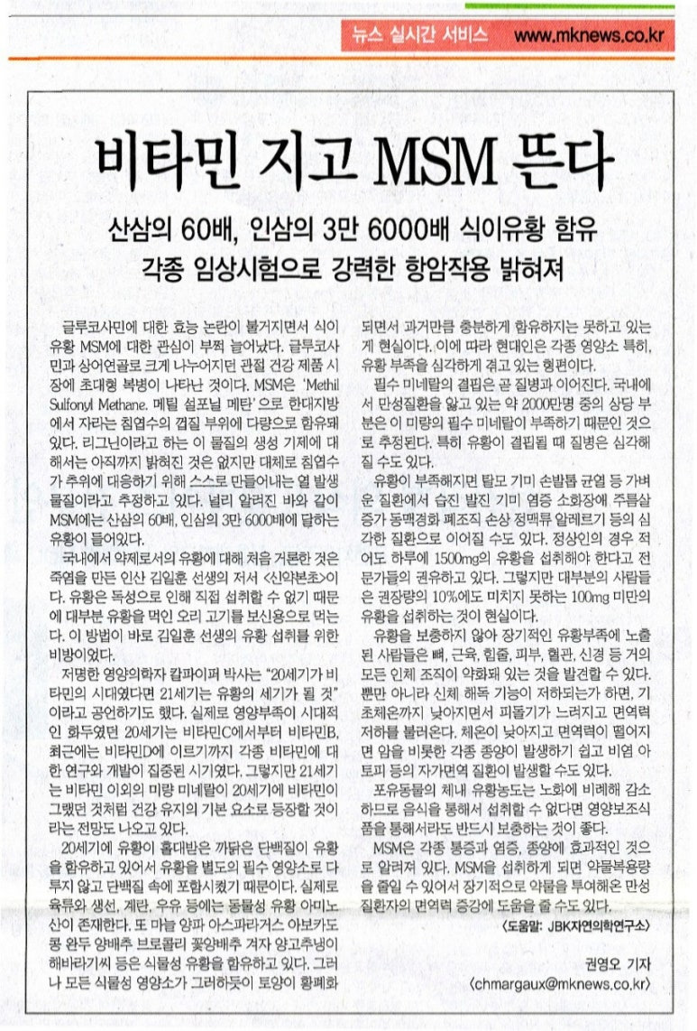 유황MSM의 치유력
